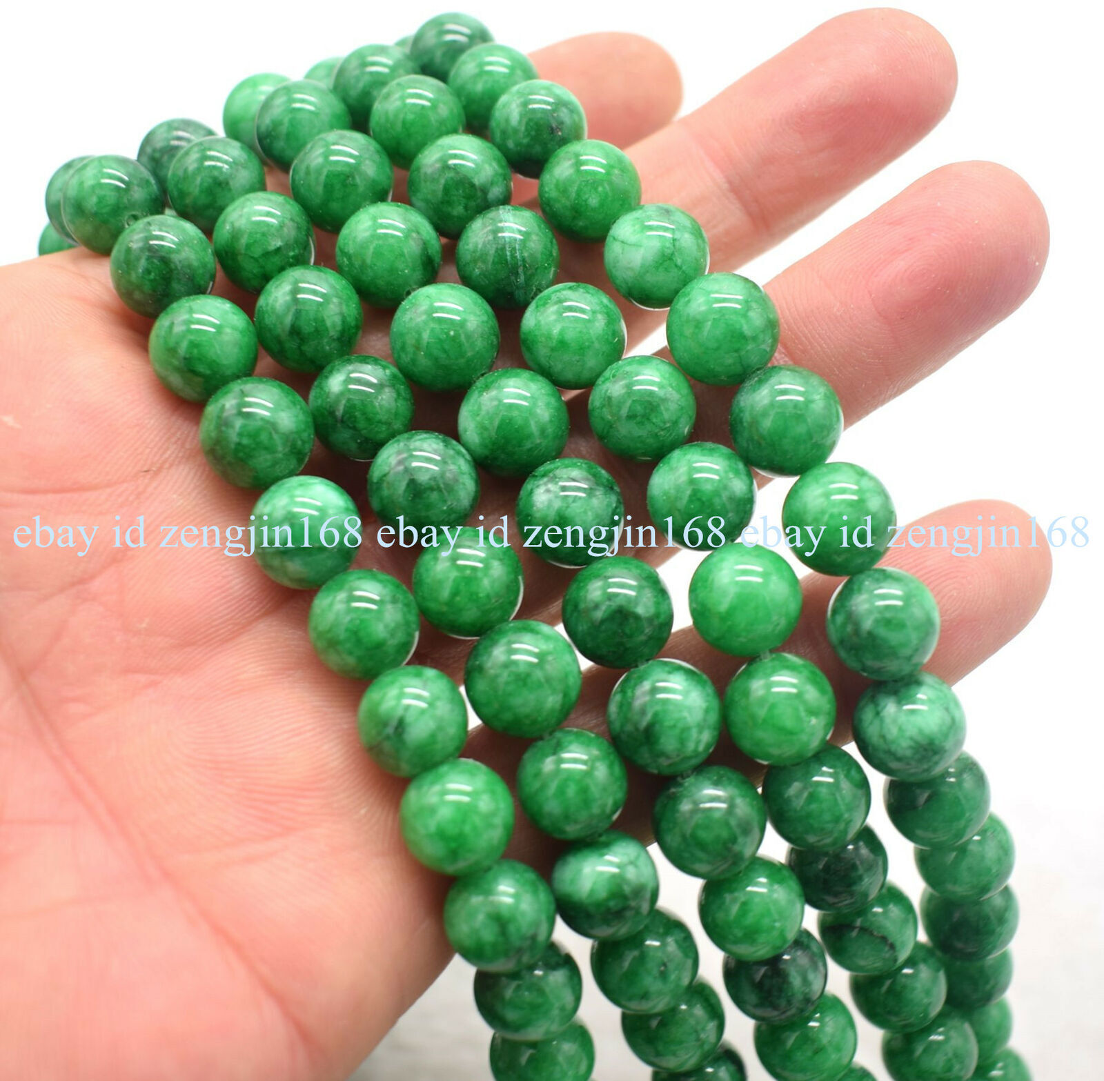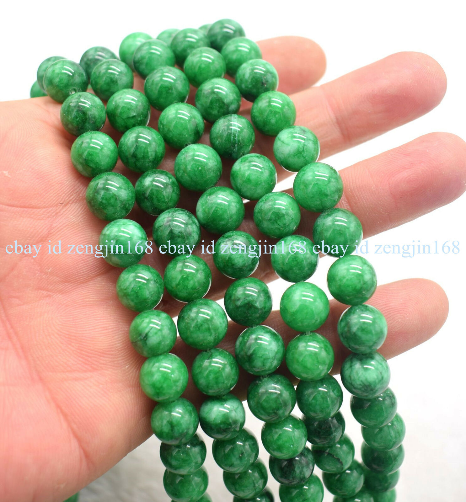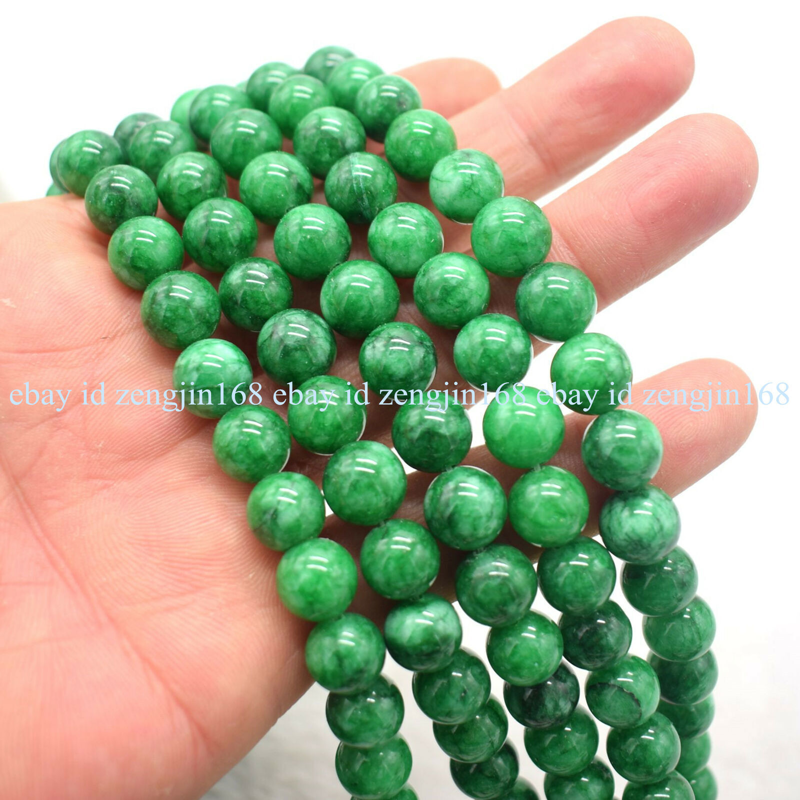 6/8/10/12/14mm Natural Green Jade Jadeite Round Gemstone Loose Beads 15 Strand