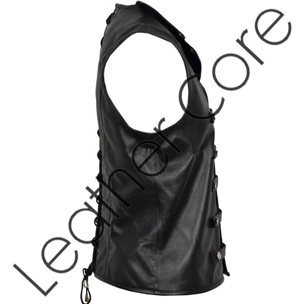 Gothic Leather Vest Steampunk Steel Boned Victorian Men Military Waistcoat
