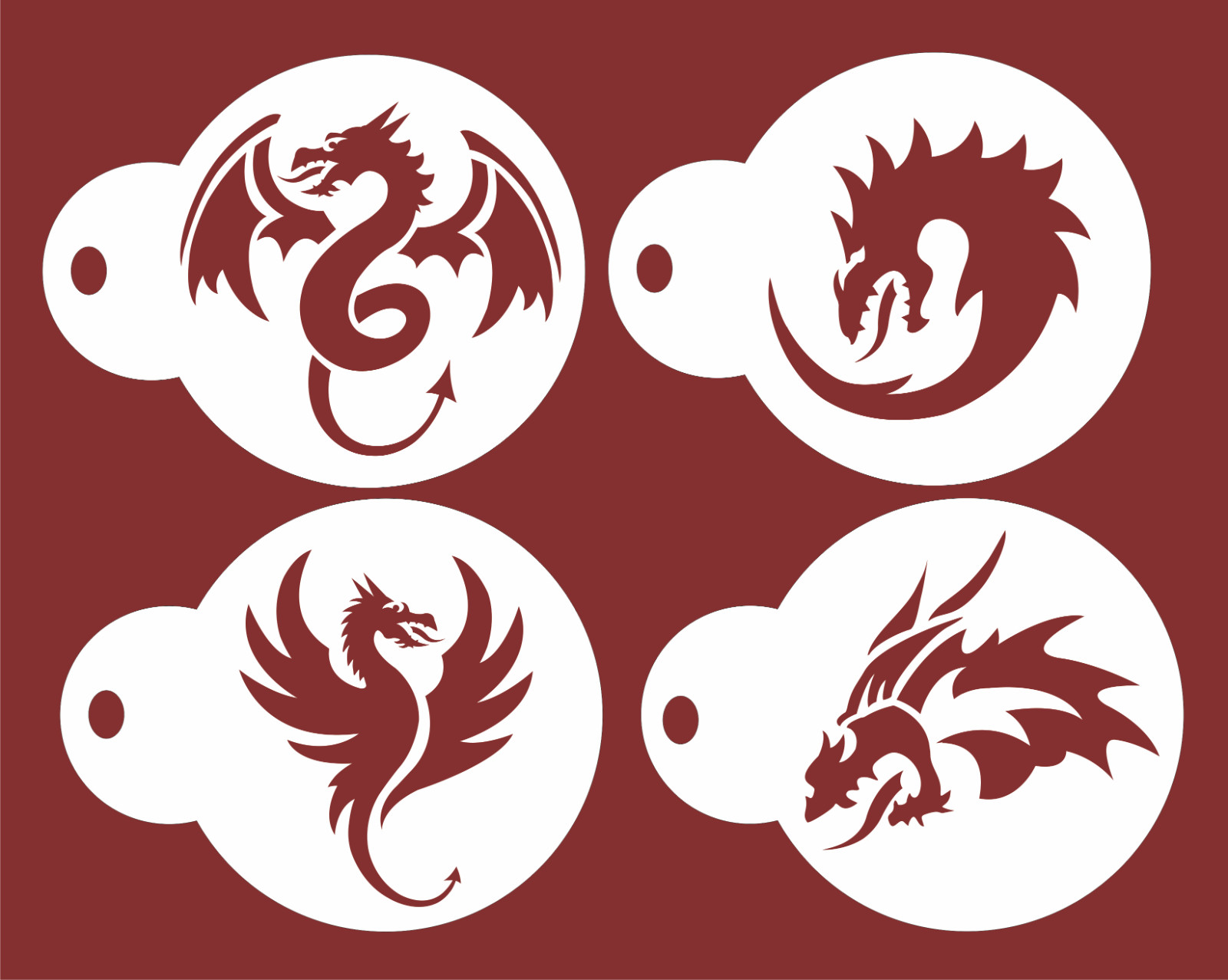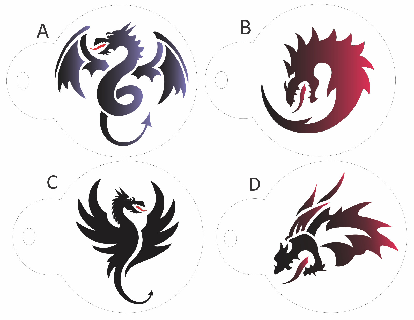 Dragons 10 mil 4 pc STENCIL Medieval Boy Tattoo Renaissance DIY Face Paint Joani