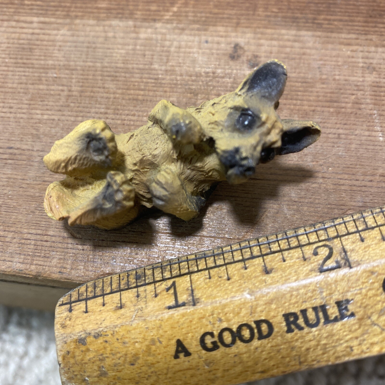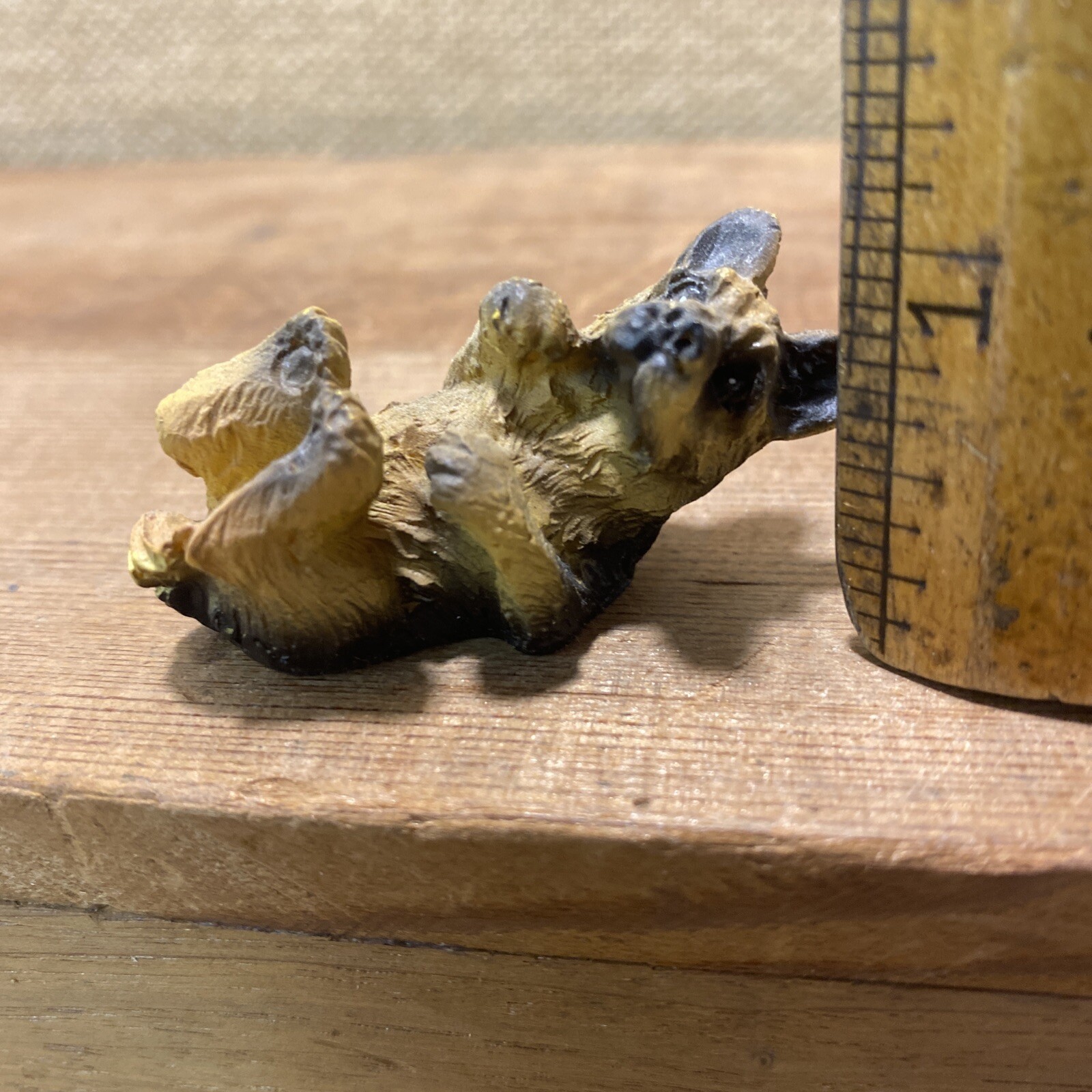 как выглядит Vtg Sitting German Shepherd Puppy Dog Mini Figurine Resin Black Tan 2" Long фото