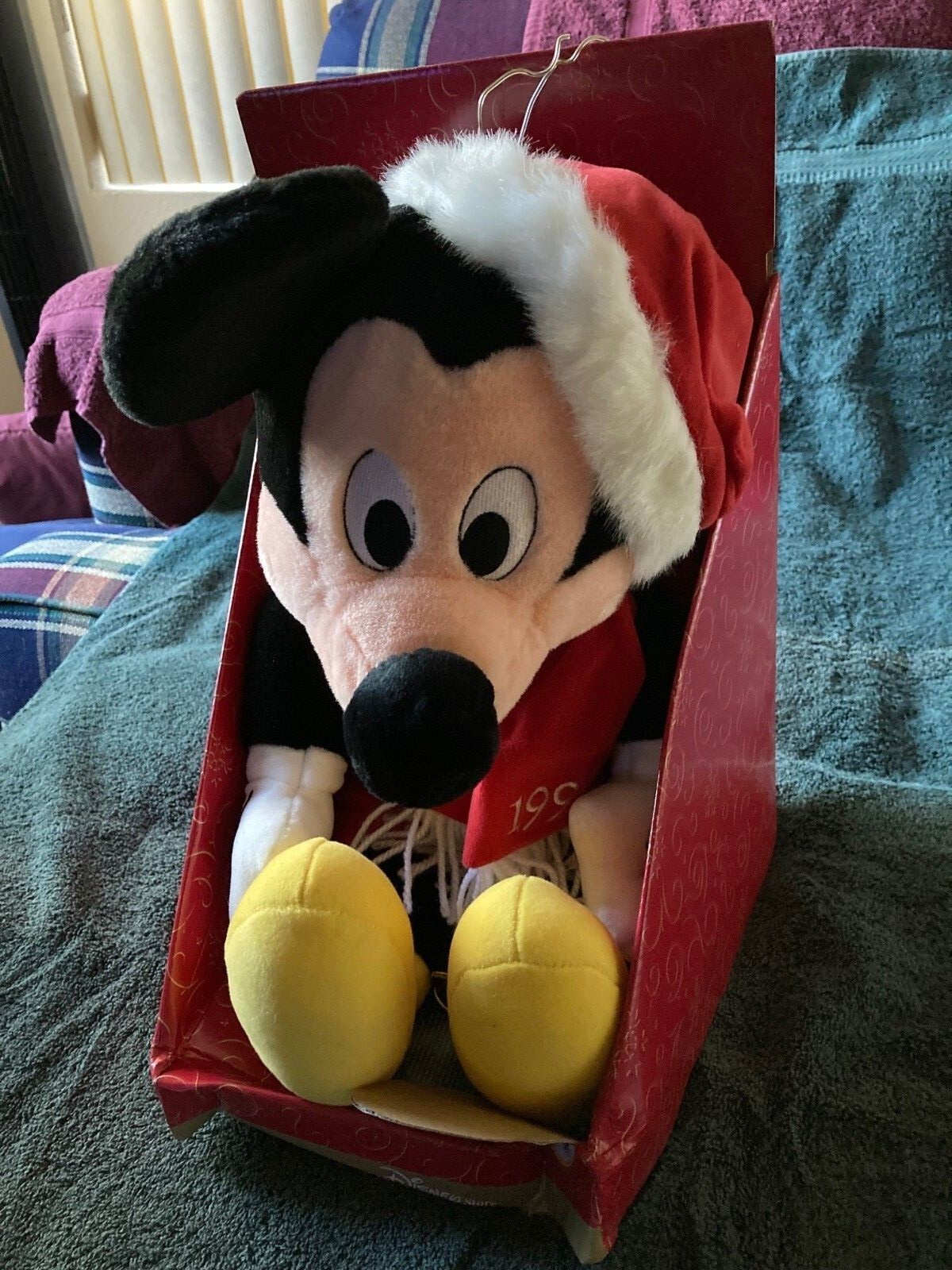 как выглядит Disney 14 inch Santa Mickey 1998 W/Scarf Plush. New in cellophane book package. фото