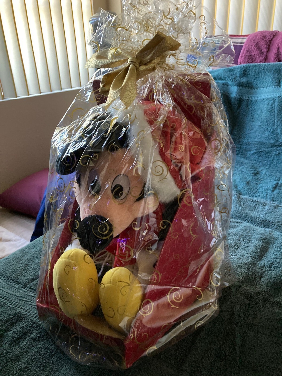 • Disney 14 inch Santa Mickey 1998 W/Scarf Plush. New in cellophane book package.
