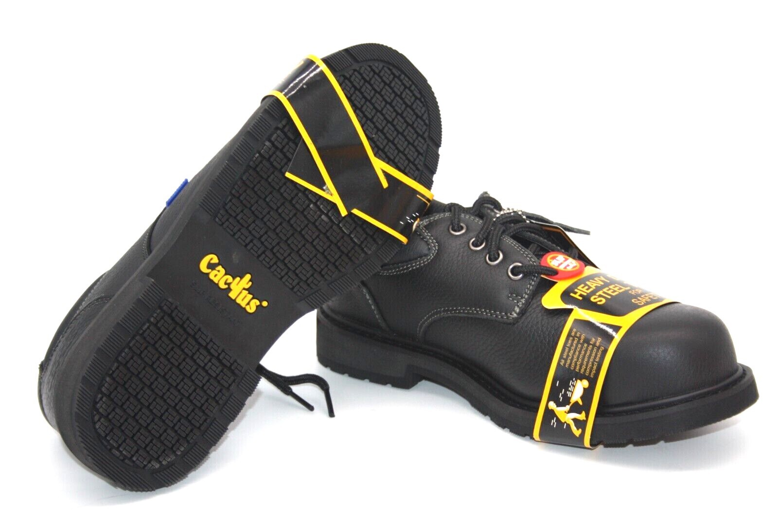 Cactus FOOTWEAR Men's 4820S Leather Work Boots STEEL TOE BLACK SLIP RESISTANT