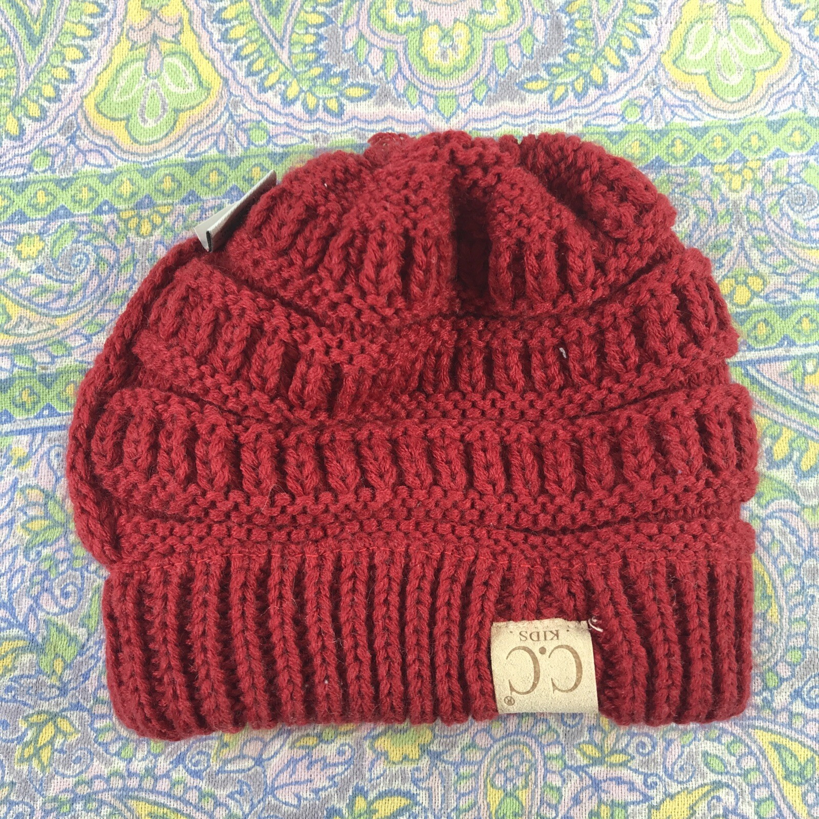 Red CC Kids Beanie Boys Girls Children Knit