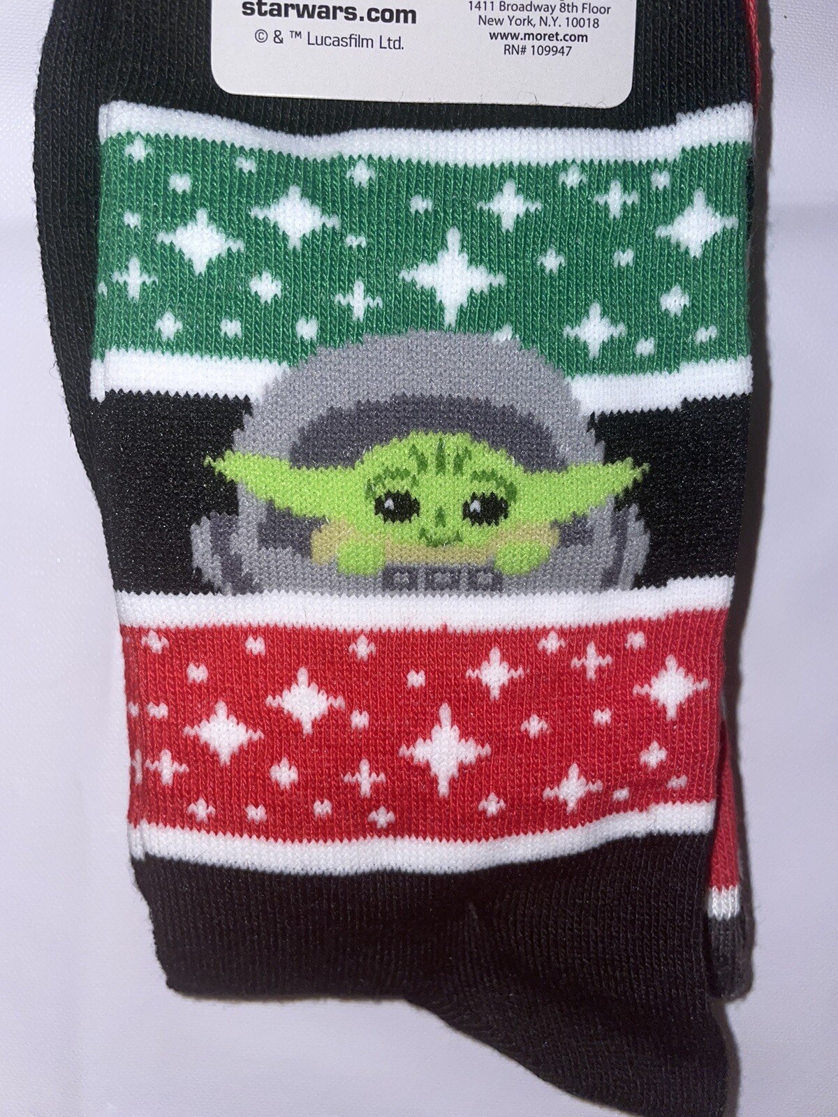 Disney Plus Wars The Mandalorian Grogu Christmas Crew Sock Set 2 Pair NEW