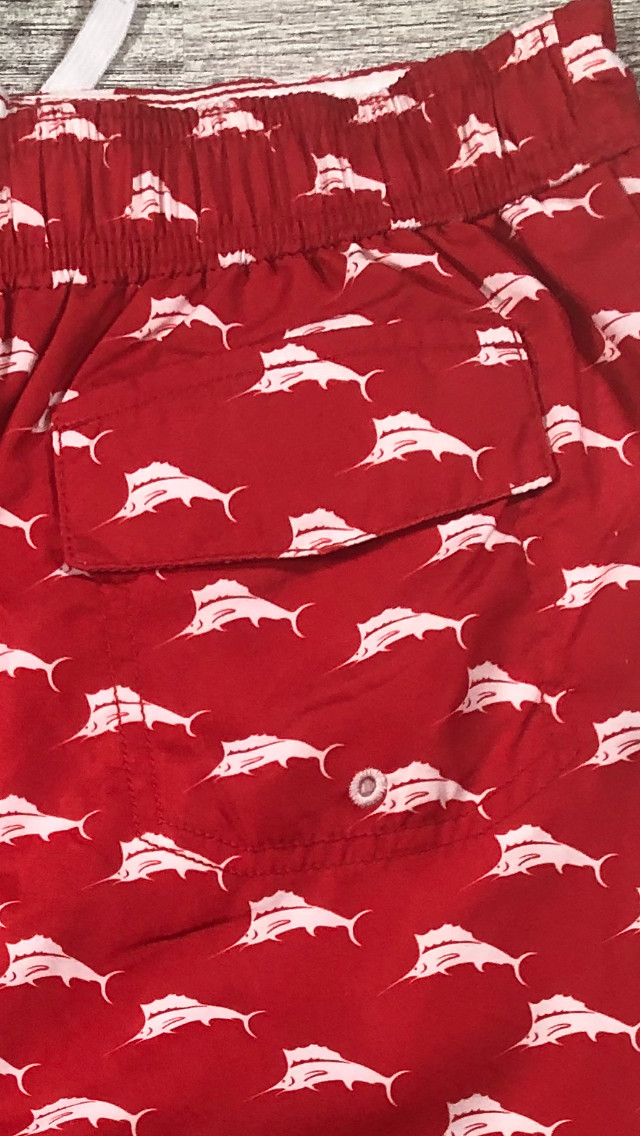 Tommy Bahama Boys XL Swim Shorts Trunks Draw String Red White Marlin