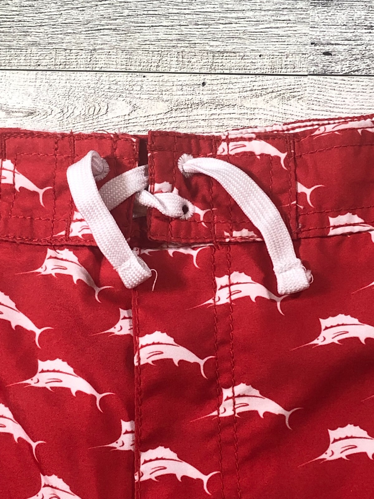 как выглядит Tommy Bahama Boys XL Swim Shorts Trunks Draw String Red White Marlin фото