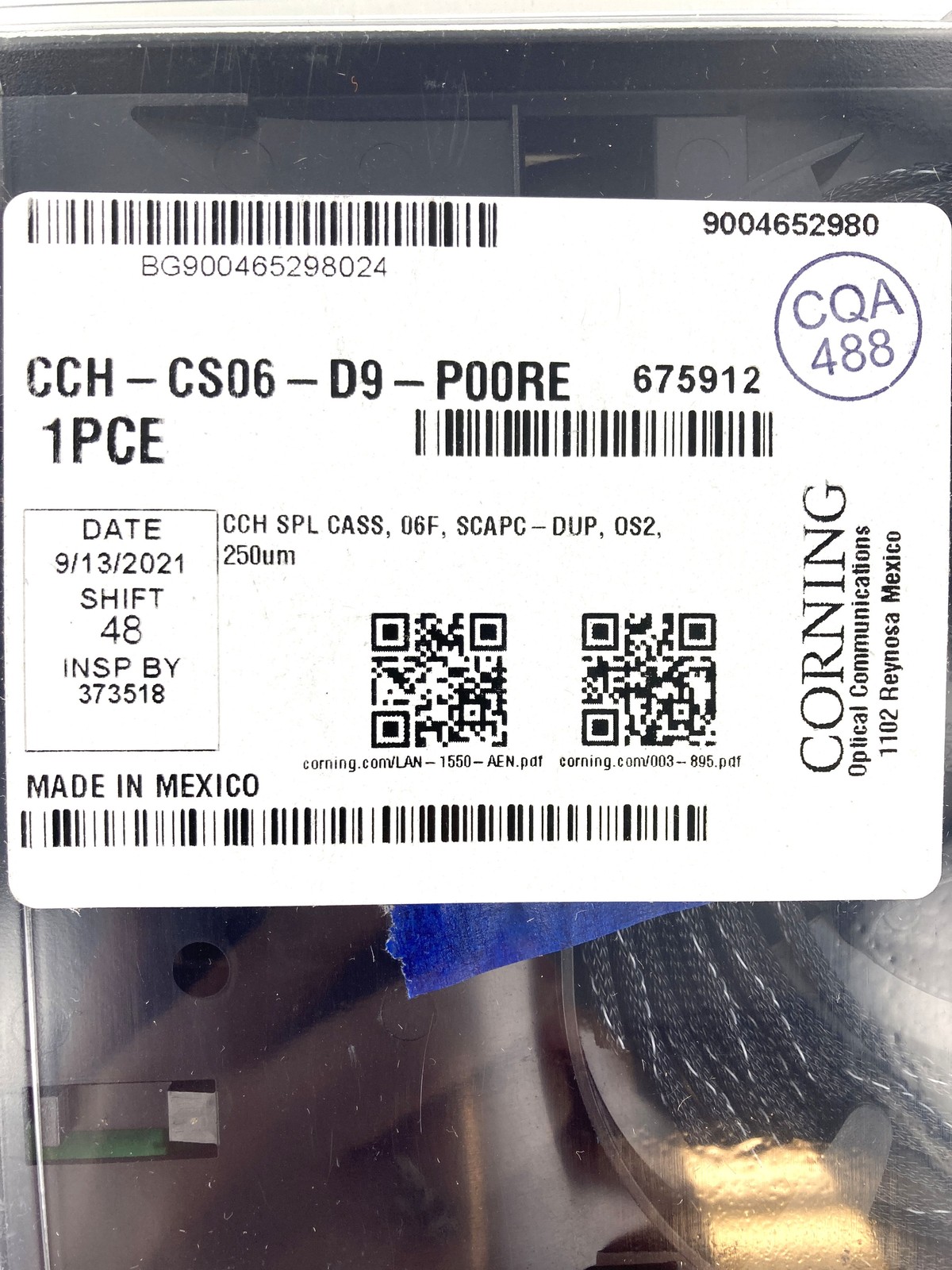 Corning CCH Pigtail Splice Cassette SC APC Duplex SM CCH-CS06-D9-P00RE STSI