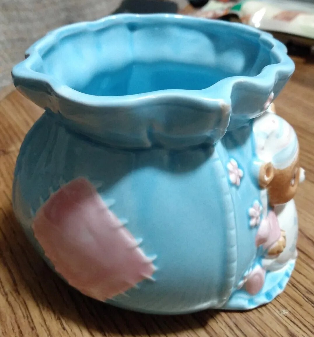 Vintage Lefton Teddy Bear Blue Nursery Themed Planter Bundle Of Joy