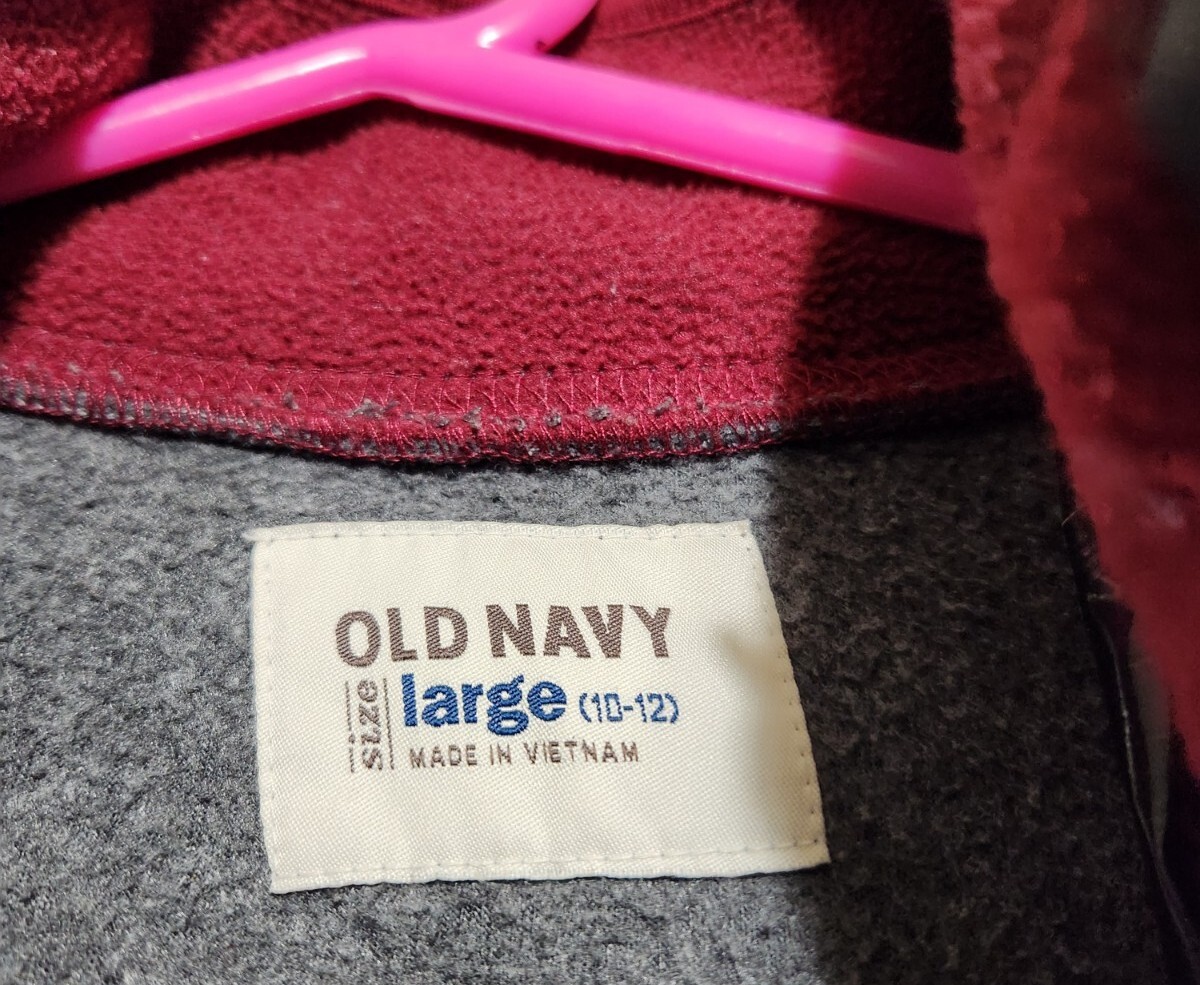 как выглядит Youth Size Large Old Navy Fleece Jacket Pullover Gray/Burgundy Pockets фото