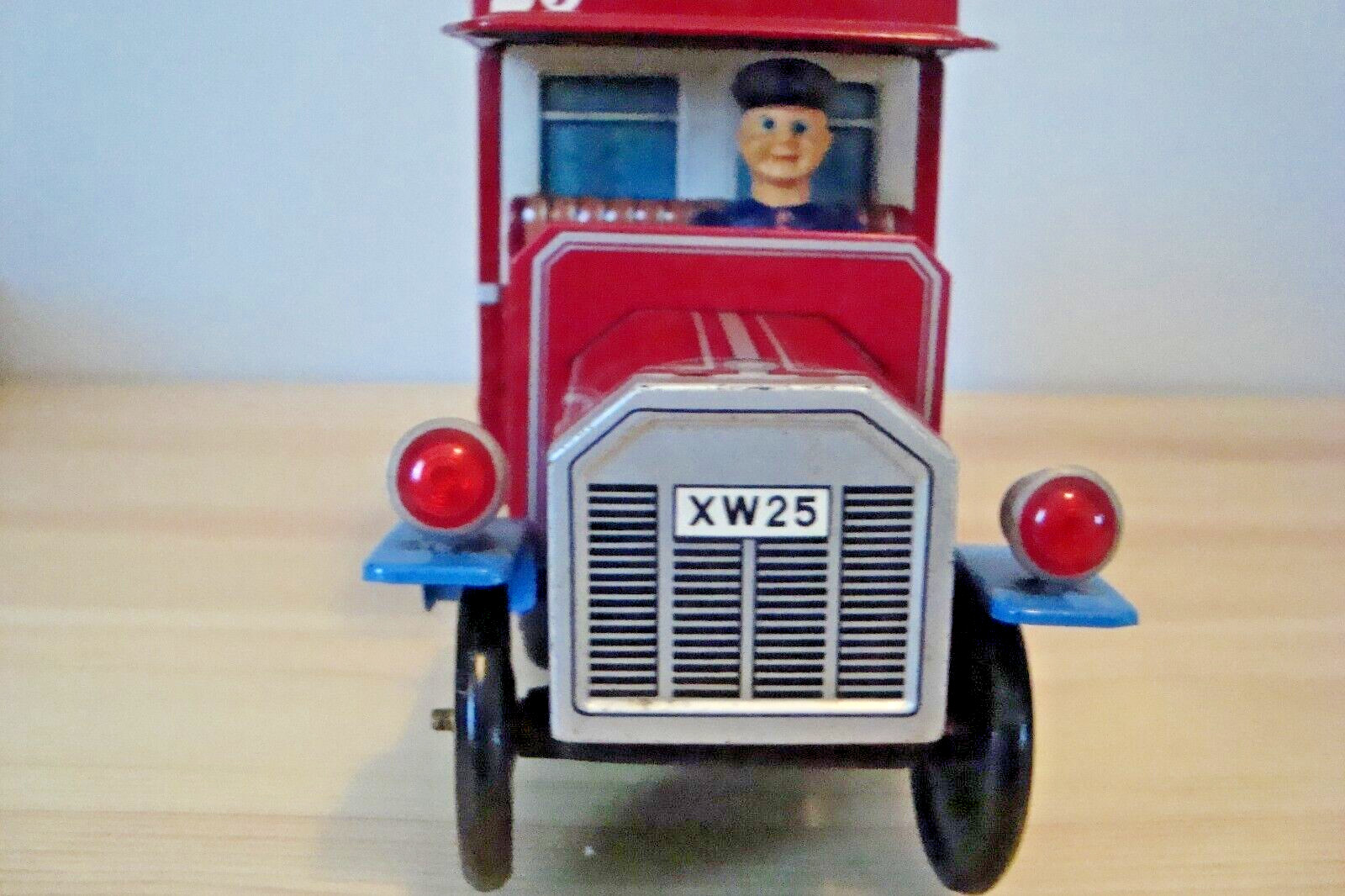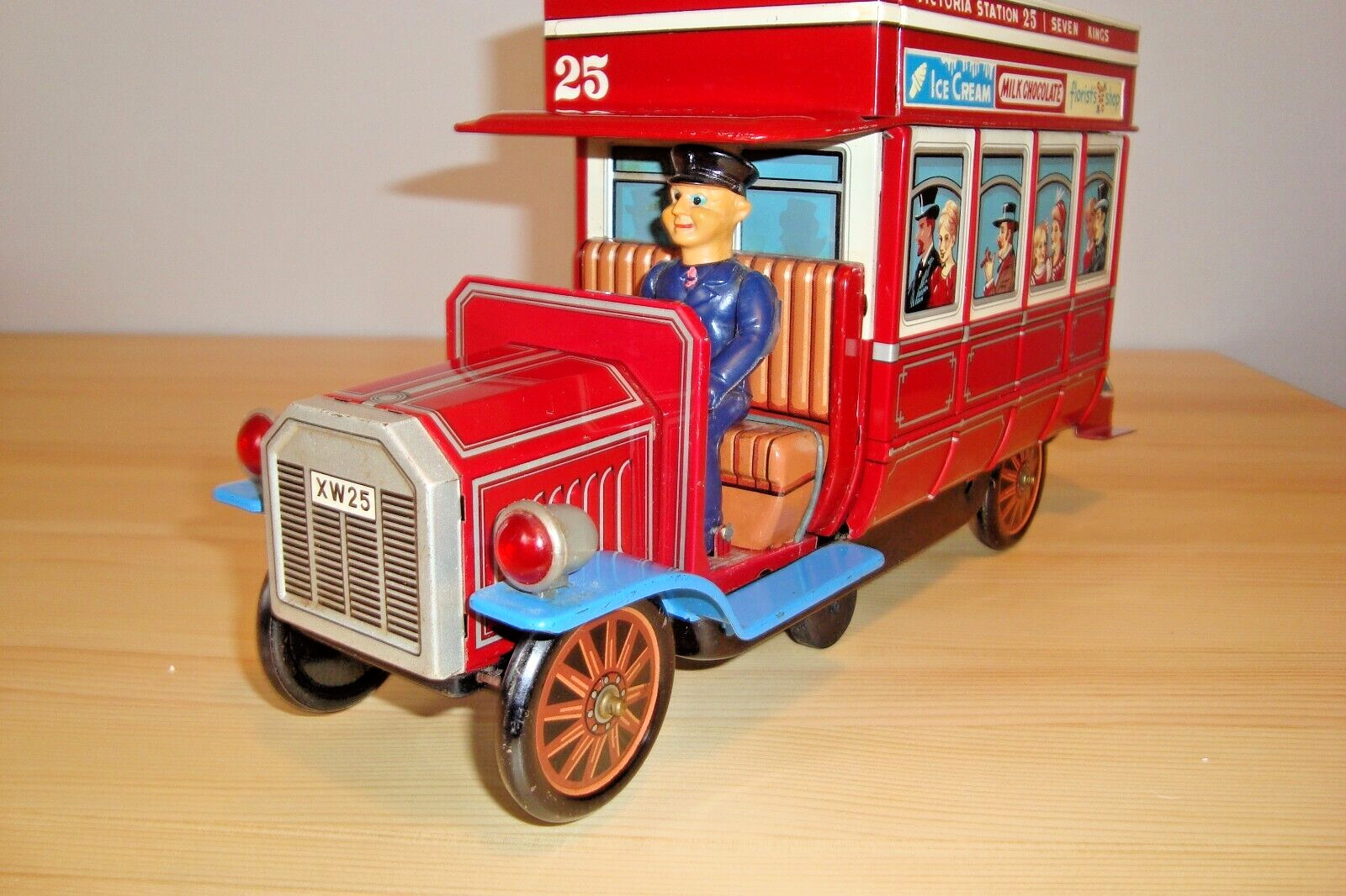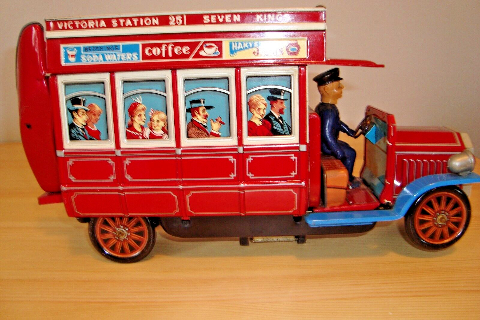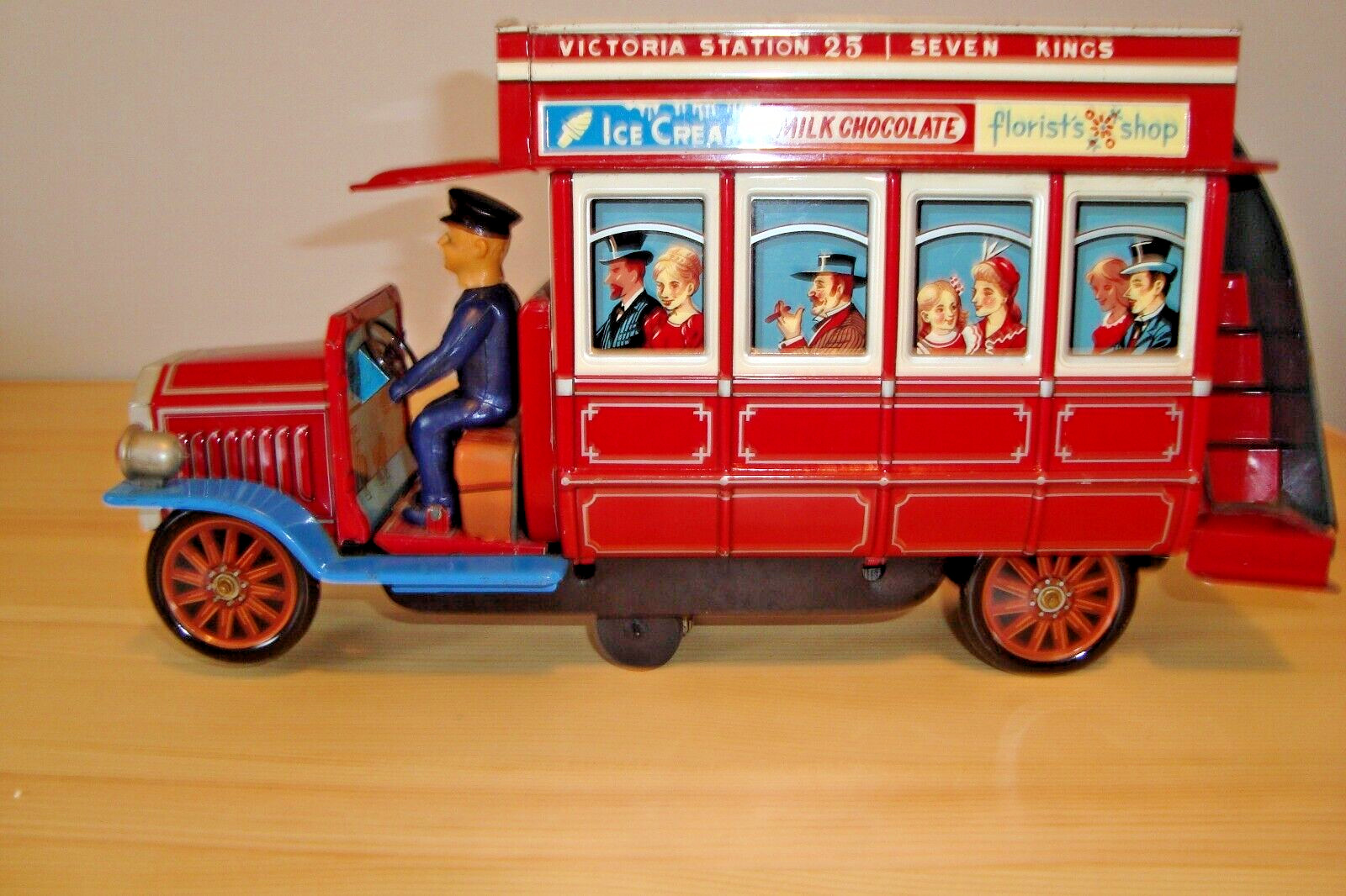 1960 VICTORIA STATION DOUBLE DECKER TIN BUS BATTERY OPERATED MODERN TOYS JAPAN