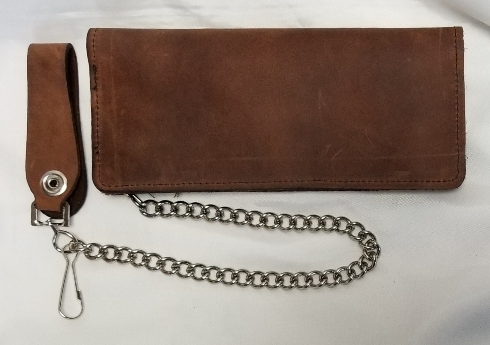 Brown Leather Trucker Wallet With Buffalo Nickel Snaps 12 Chain MADE IN USA