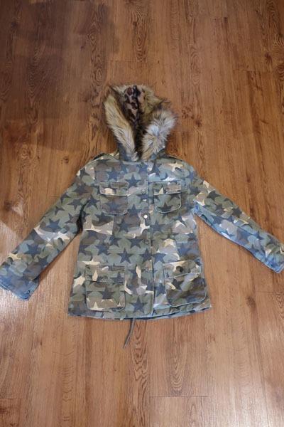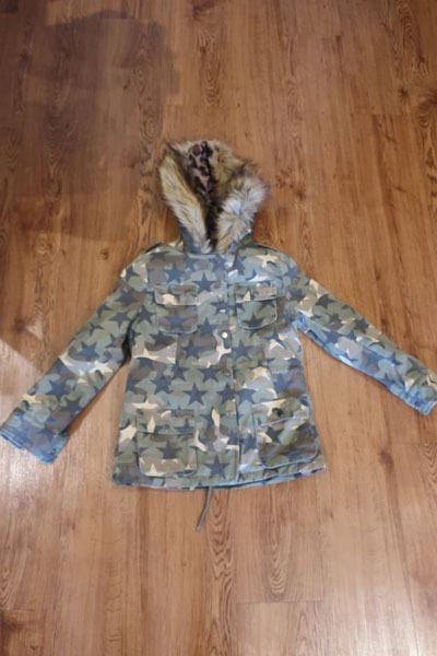 как выглядит Girls Vintage Havana Green Brown Camo Faux Fur Hood Trim Jacket L фото