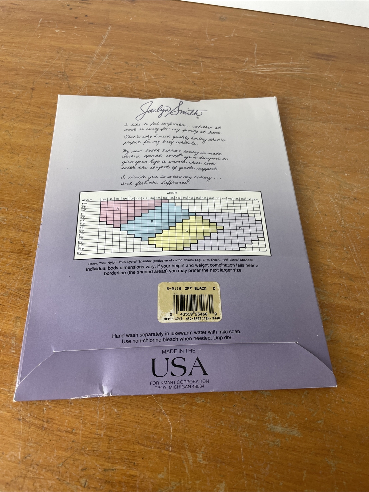 Vintage Jaclyn Smith Light Support Lycra Silky Sheer Pantyhose Size D Off Black