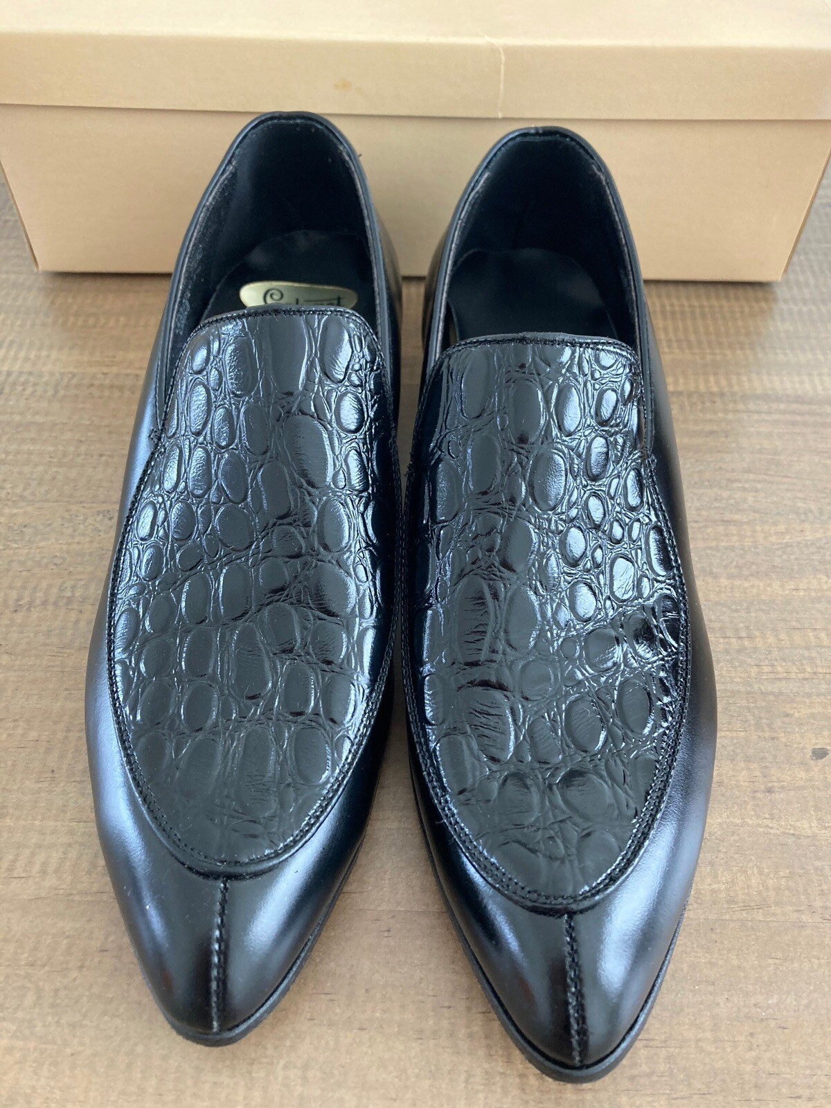 как выглядит Vintage 1960s Calumet Mens Black Blucher Leather Dress Shoes Size 8 - NOS фото