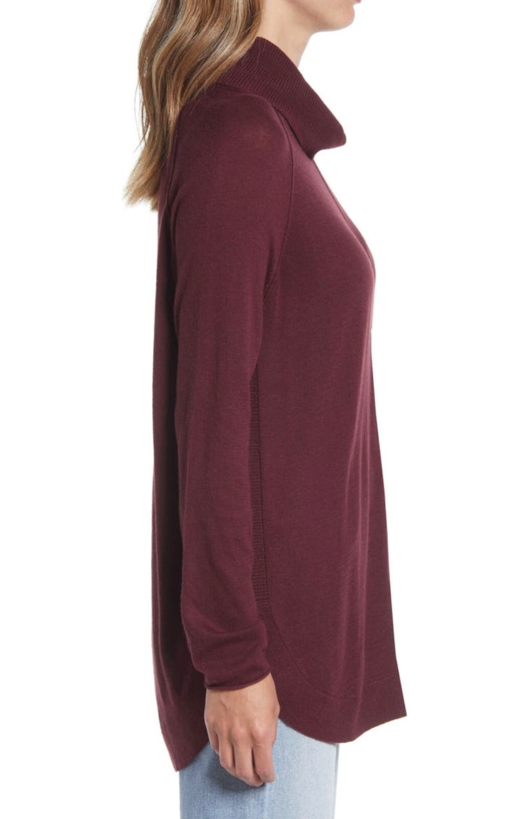 как выглядит CASLON - SIZE: S - Burgundy Turtleneck Tunic Sweater W/Curved Shirttail Hem-NEW фото