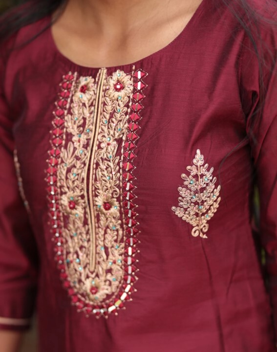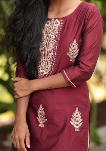 Brand New Bollywood India Maroon Gold Long Kurta Kurti Women Medium