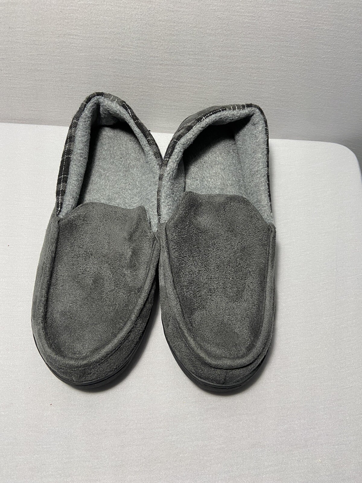 Christmas Gift Men Memory Foam Slippers Moccasins Faux Suede Gray Medium 7/8