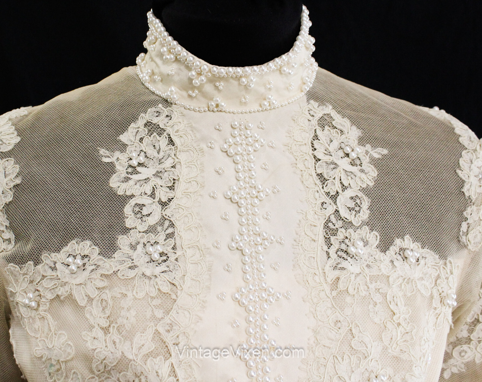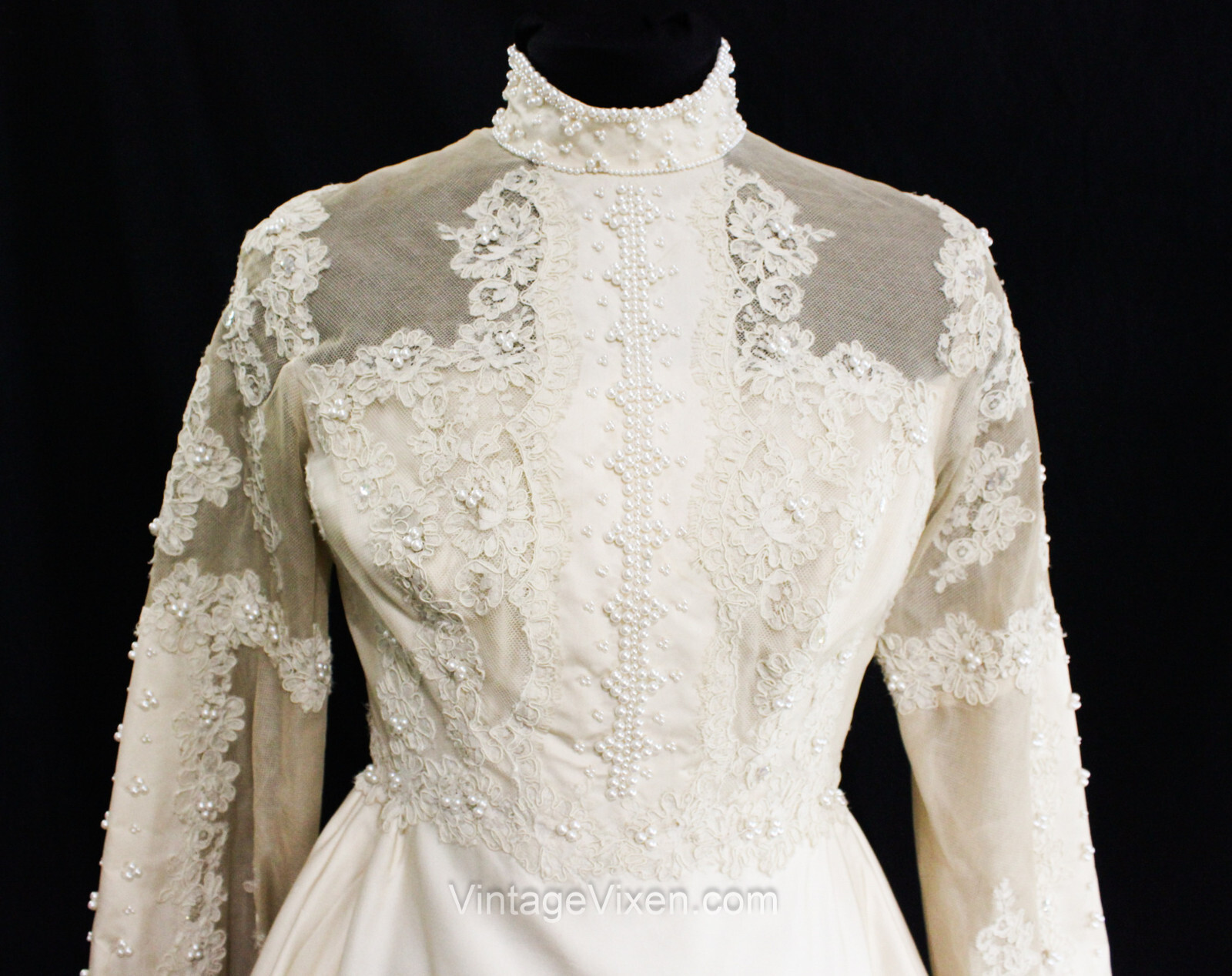 Size 6 Wedding Dress with Train 1960s Silk Peau du Soie Beaded Bridal Gown NWT