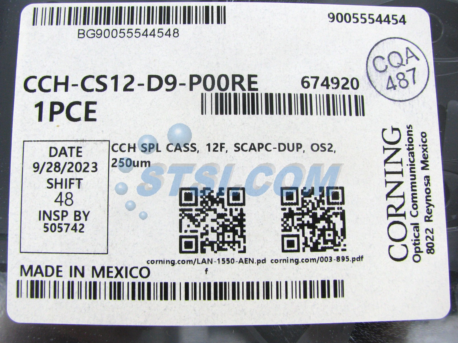 Corning CCH Pigtailed Splice Cassette SC APC Duplex SM CCH-CS12-D9-P00RE STSI