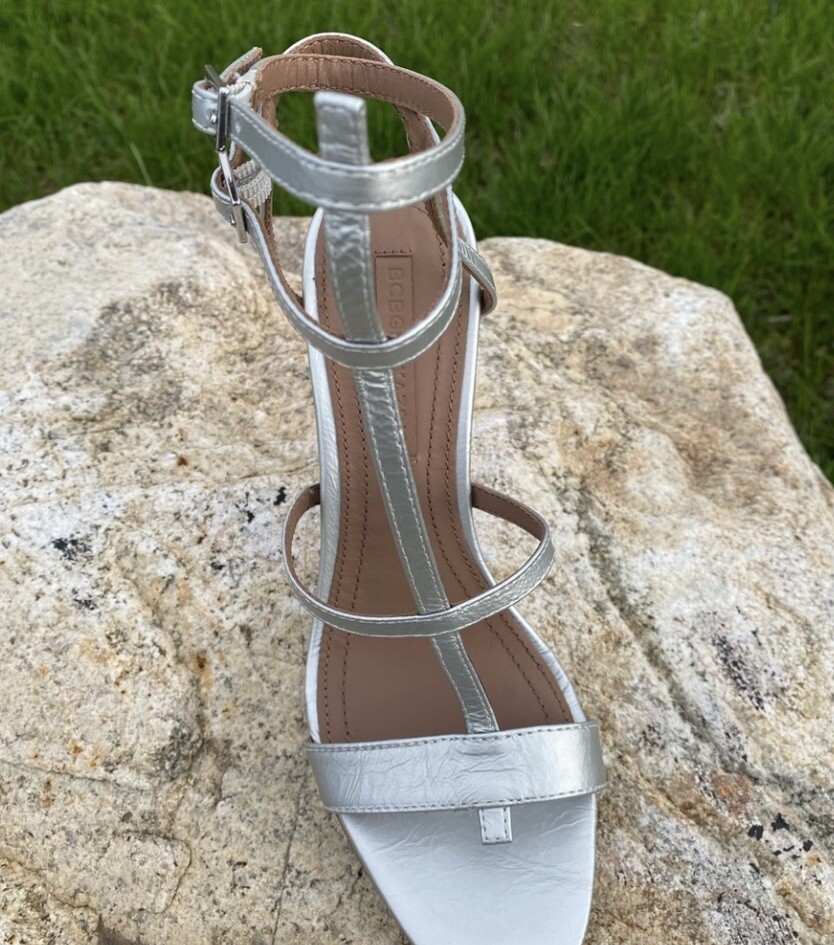 как выглядит Size 7 Preowned  BCBGMAXAZRIA Iliana Ankle Strap 4 Metallic Silver Stiletto фото