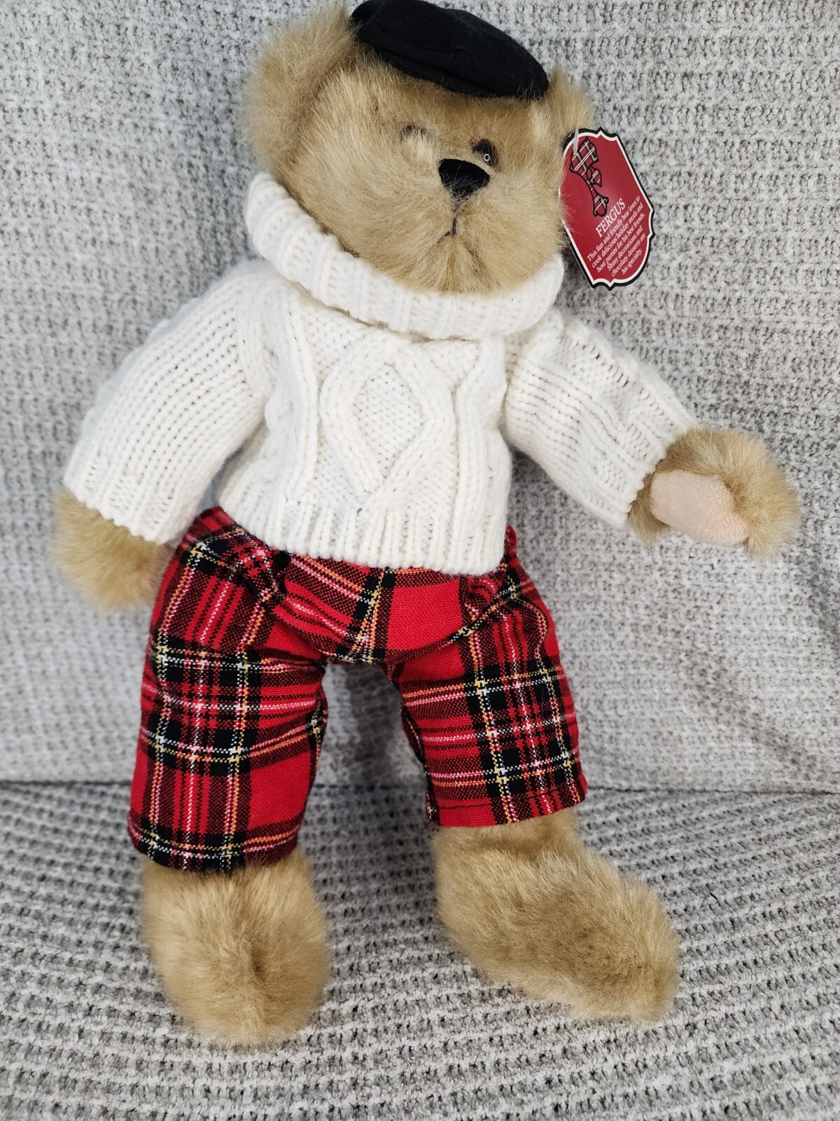 как выглядит Fergus Plush Teddy Bear 2008 Regis Corporation 14" Plaid Pants Fisherman Sweater фото