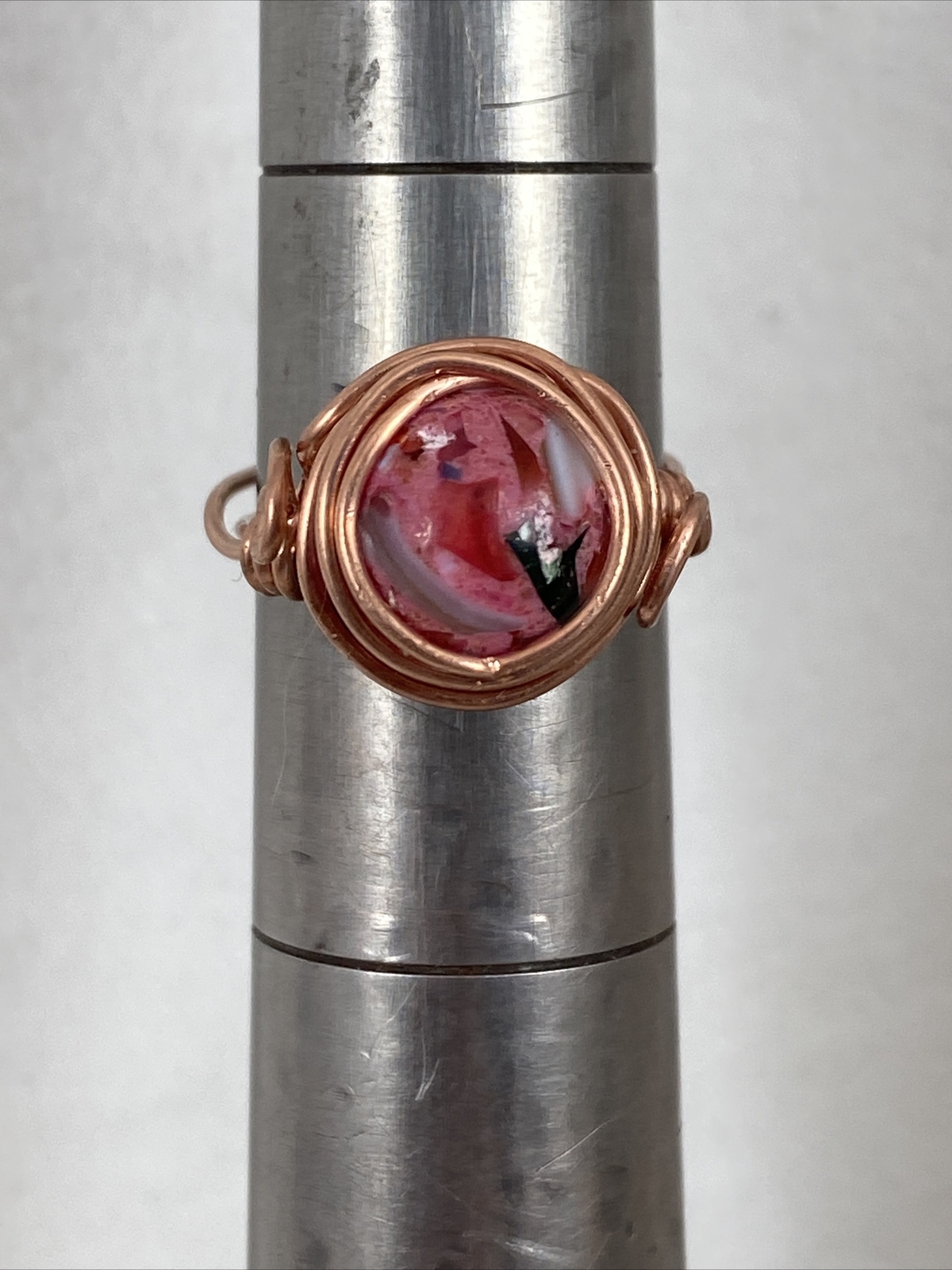 Handmade Copper Wire Wrap Pink Tones Glass Bead Ring Size 6 158