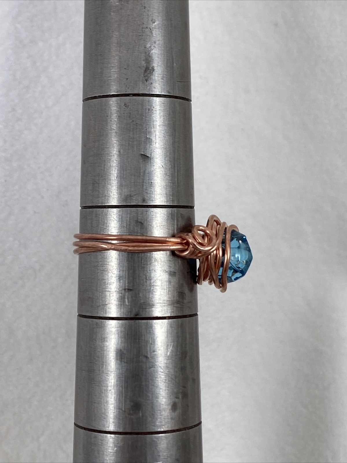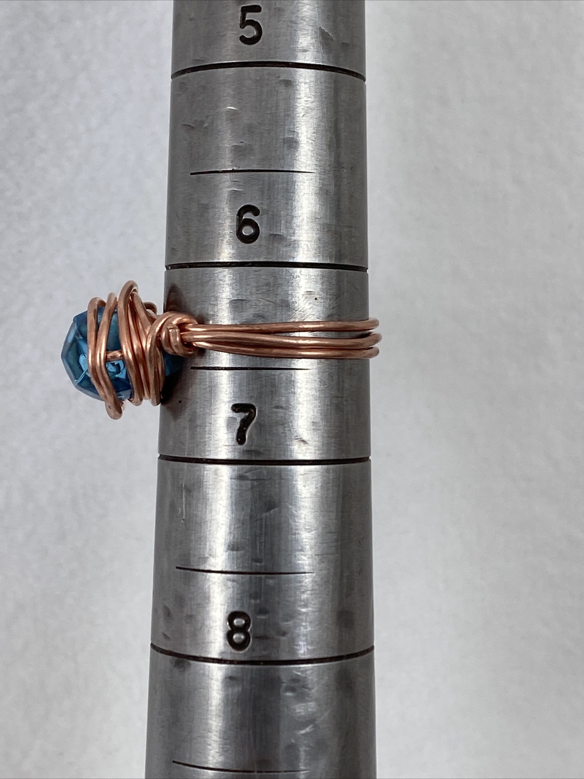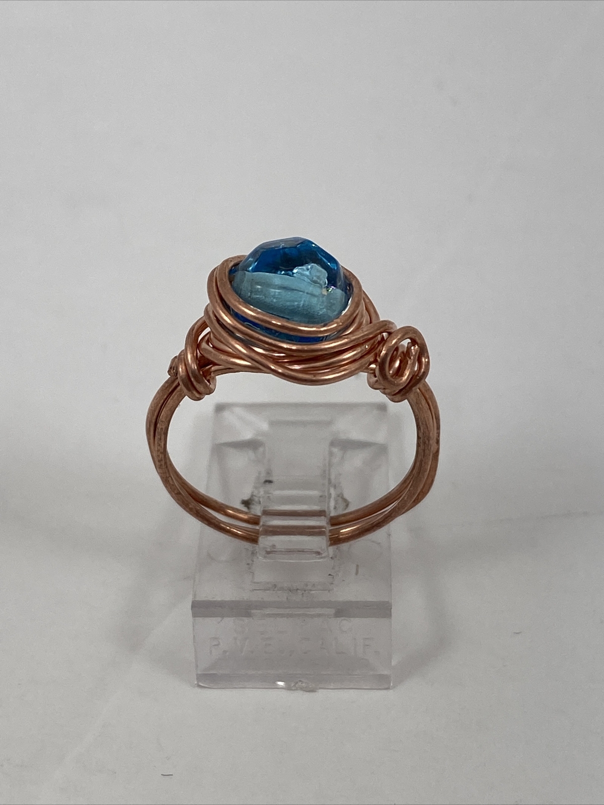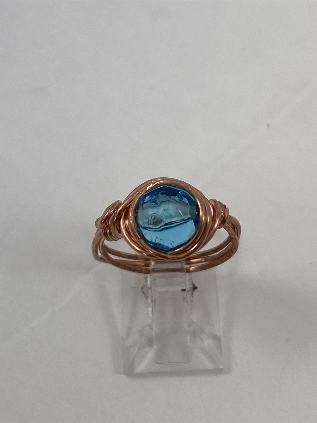Handmade Copper Wire Wrap Glass Bead Ring Size 6 1/2 110