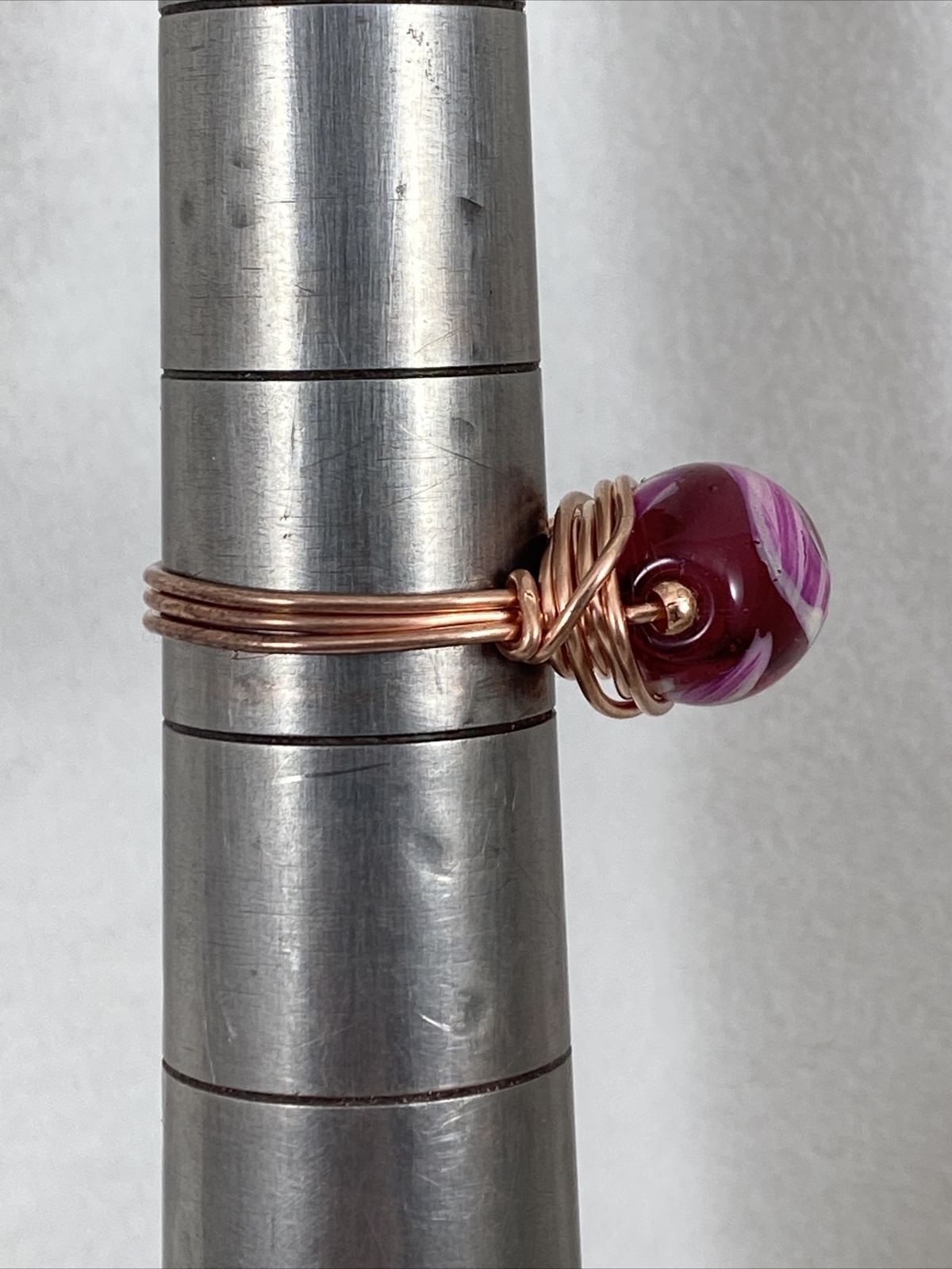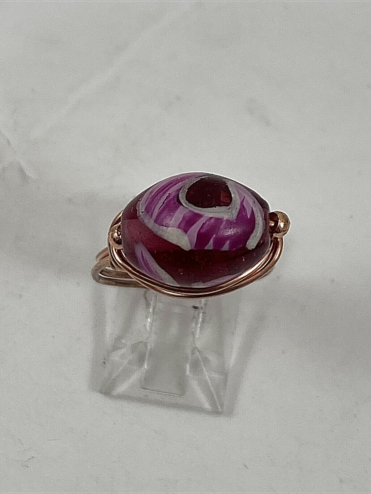Handmade Copper Wire Wrap Pink Tones Glass Bead Ring Size 6 1/2 165