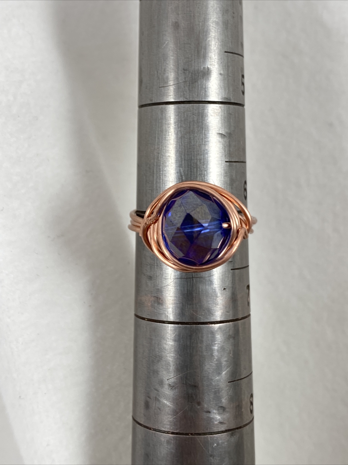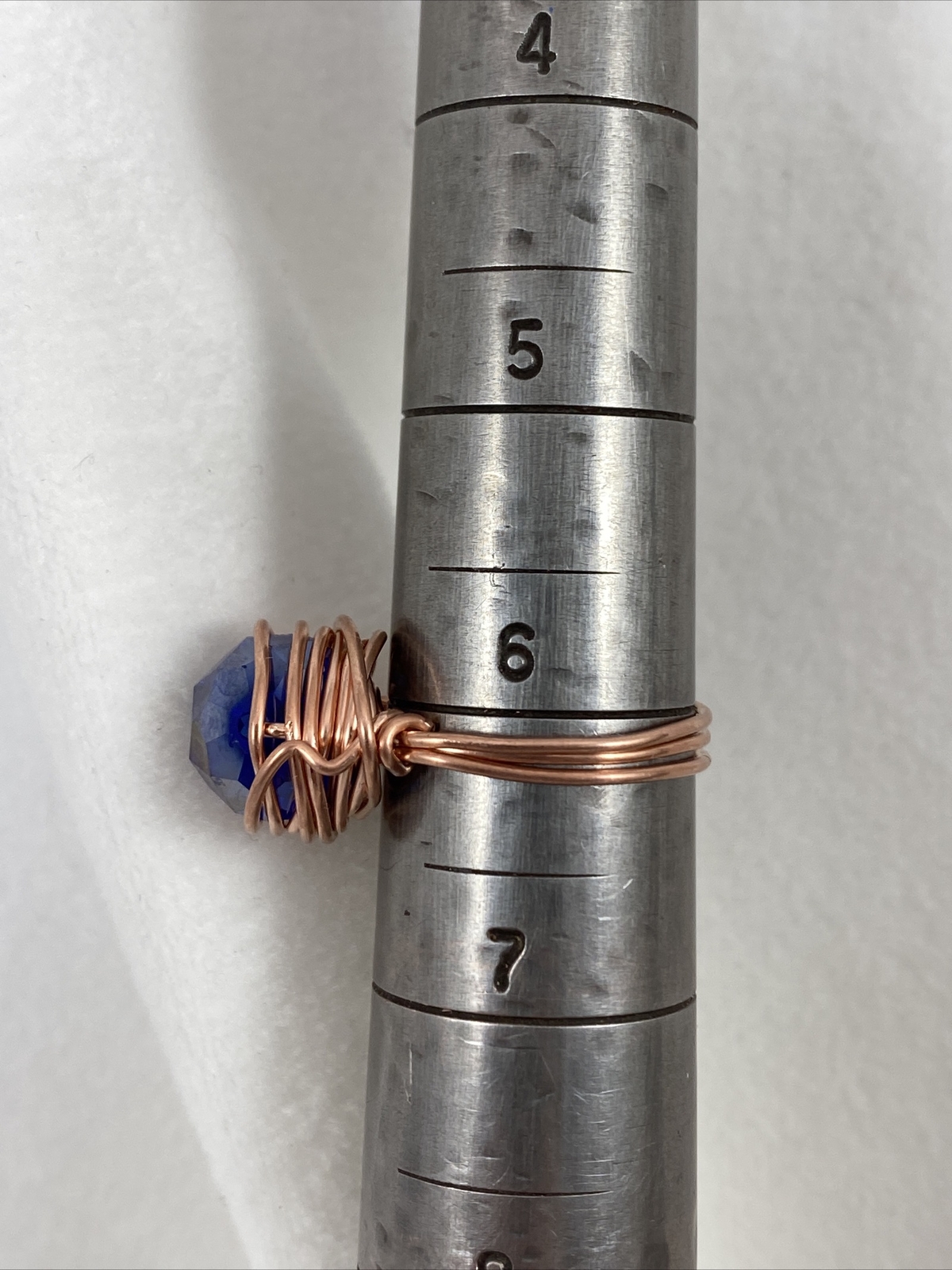 Handmade Copper Wire Wrap Glass Bead Ring Size 6 118