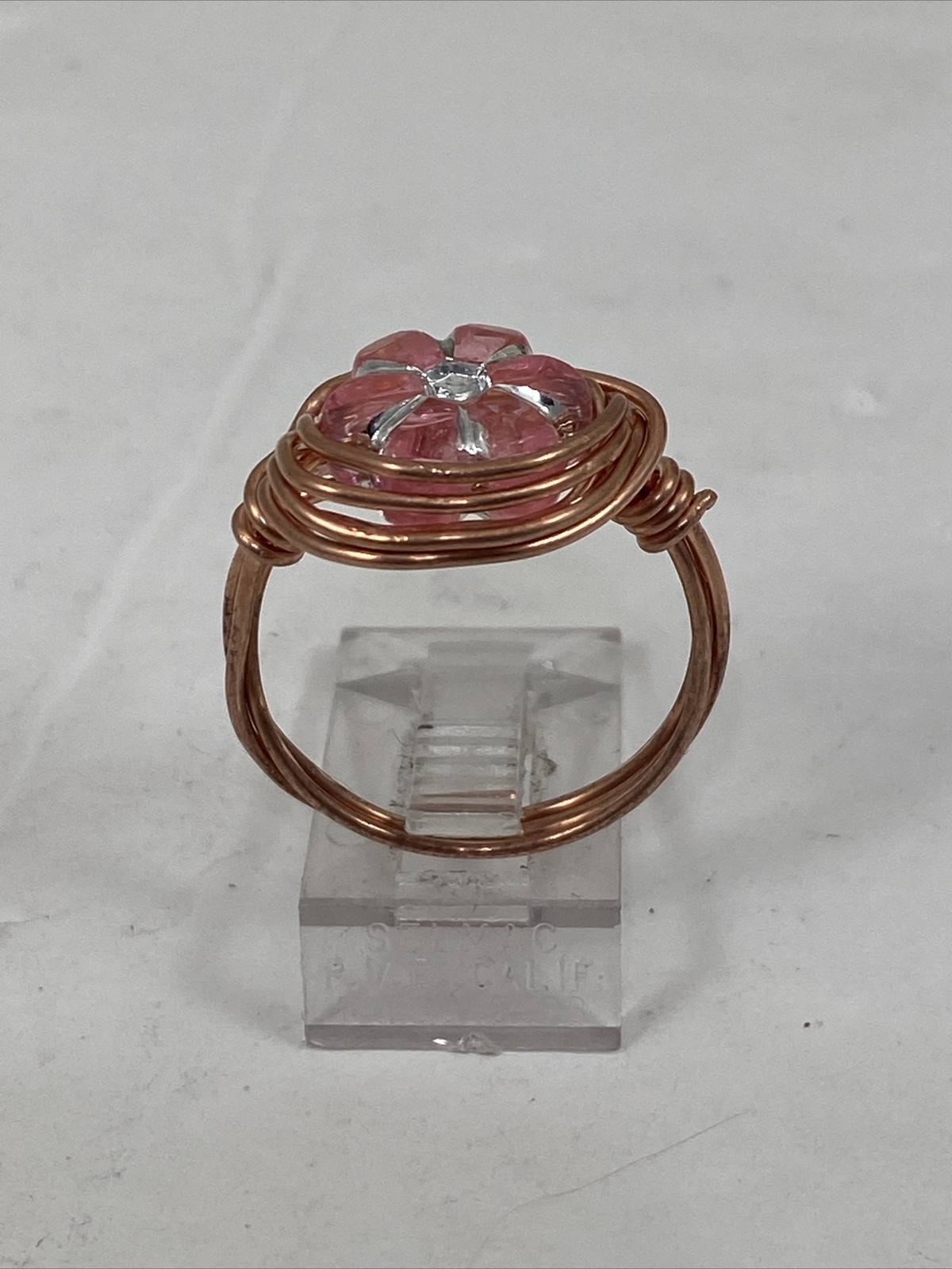 Handmade Copper Wire Wrap Pink Tones Glass Bead Ring Size 7 1/2 160