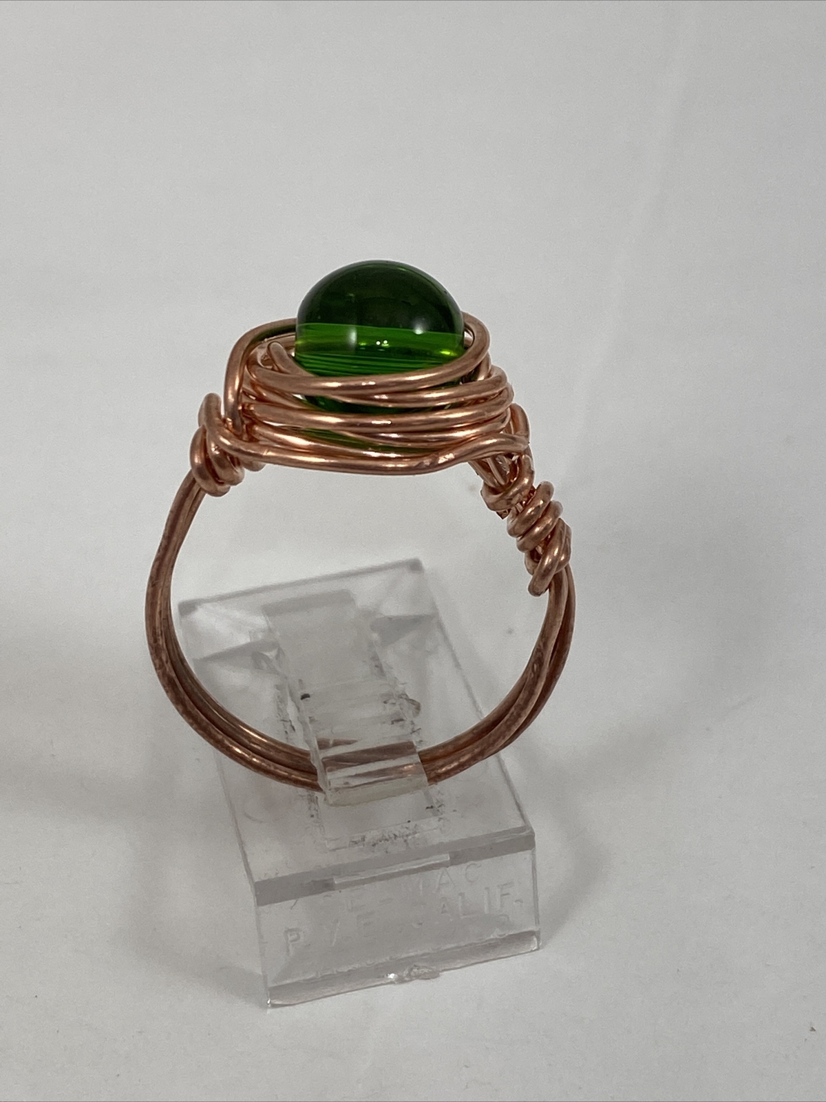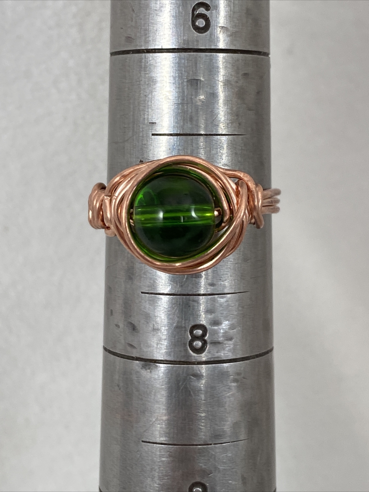 Handmade Copper Wire Wrap Green Glass Bead Ring Size 7 142