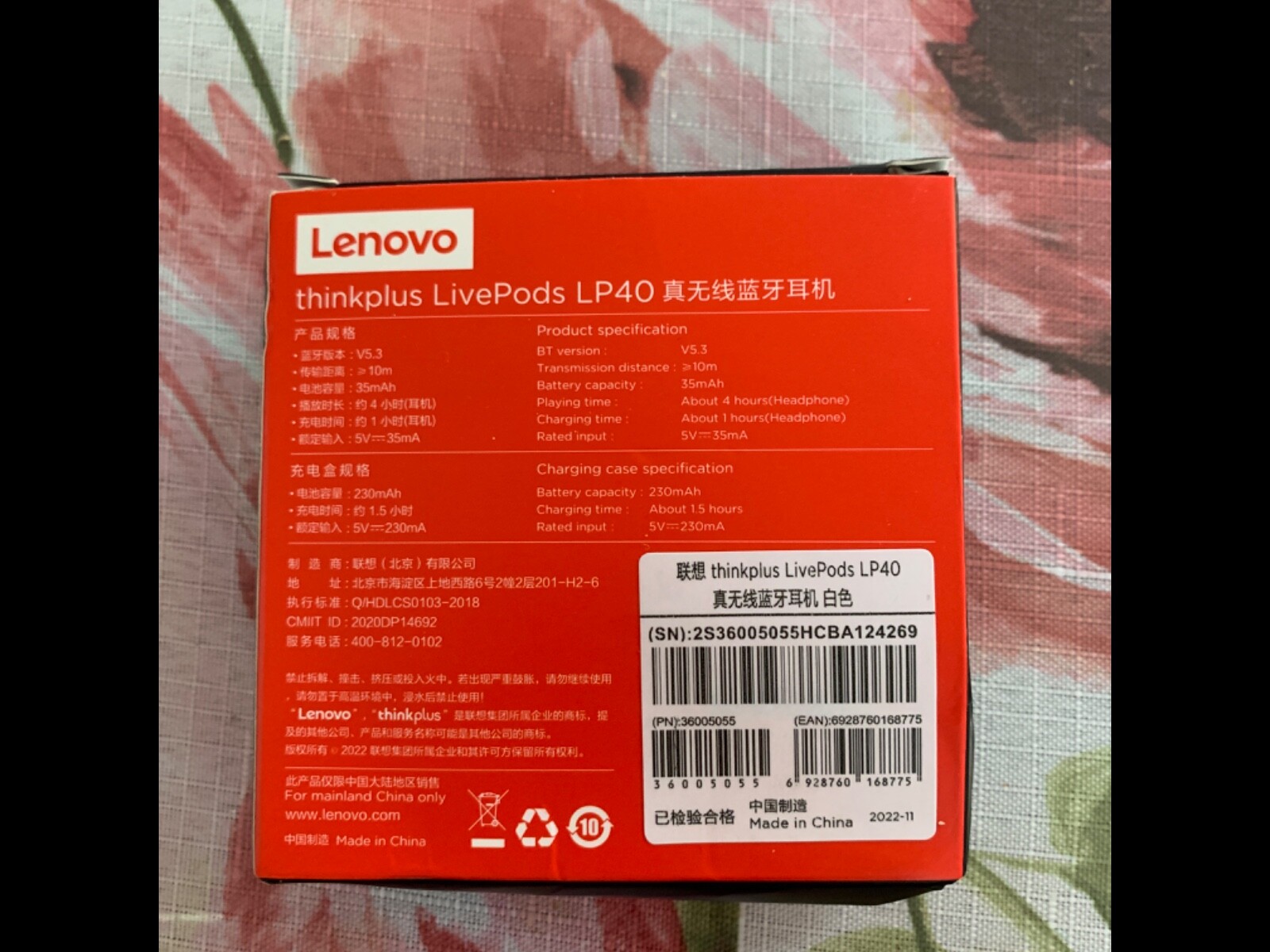 Lenovo Thinkplus LivePods LP40 Wireless Earphones Earbuds NEW