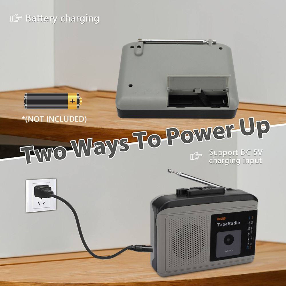 Portable Cassette Player AM/FM Radio Receiver Stereo Sound Speaker w/3.5mm Jack