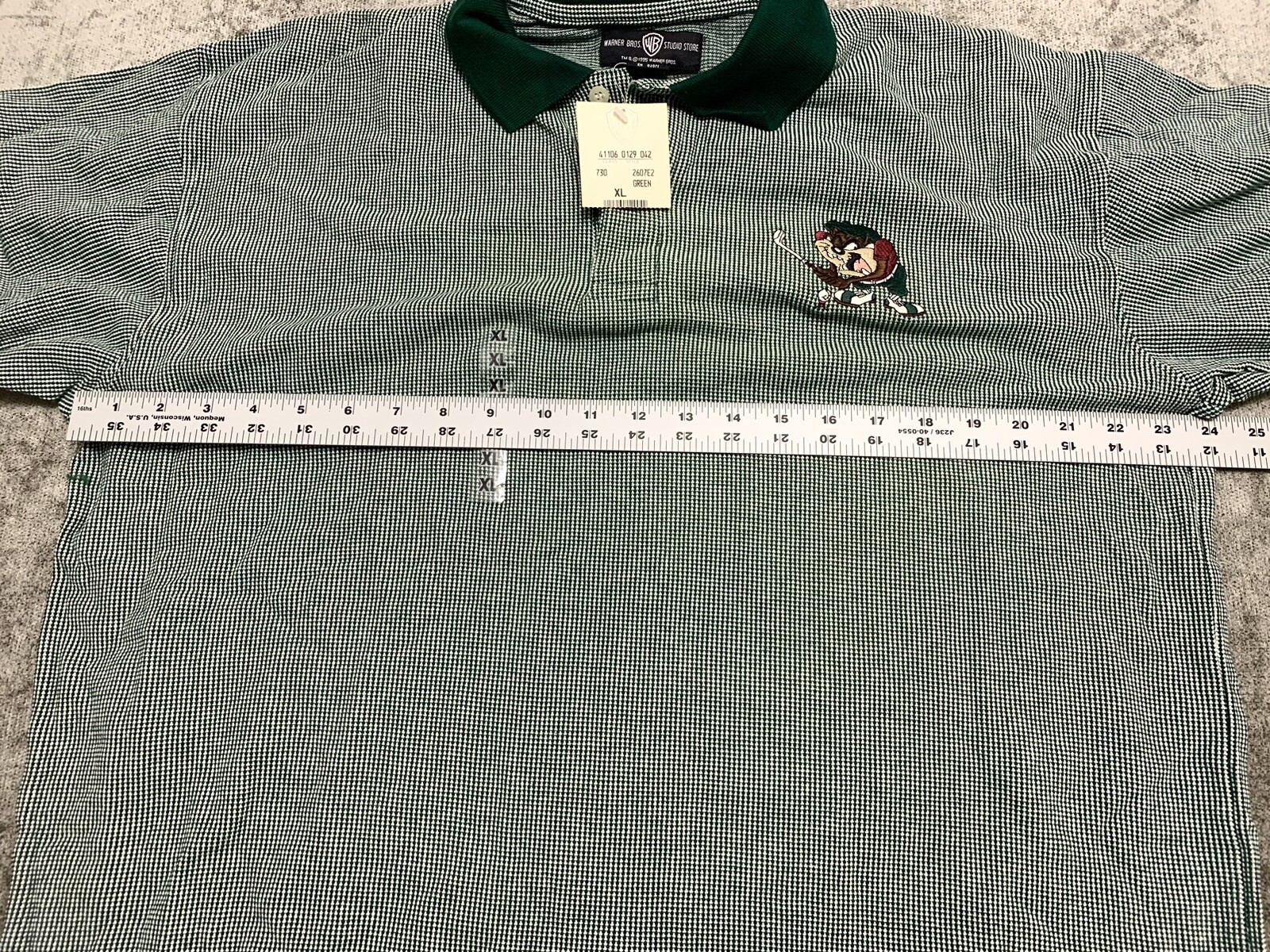 Vintage Warner Bros Tasmanian Devil Taz Golf Polo XL Green Looney Tunes Shirt 95