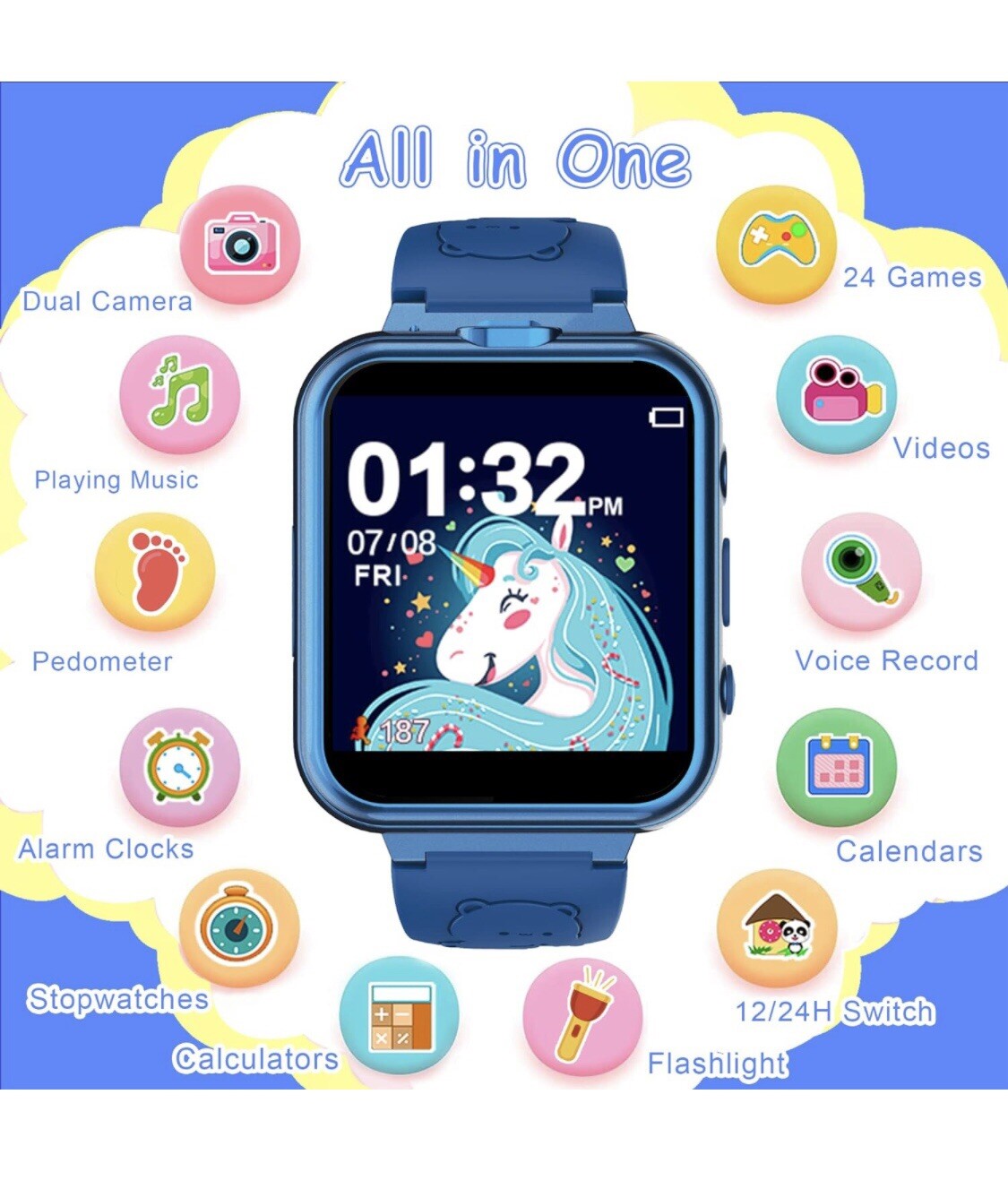 Smart Watch For Kids with Dual Camera Video Music Player 24 Learning Games Alarm