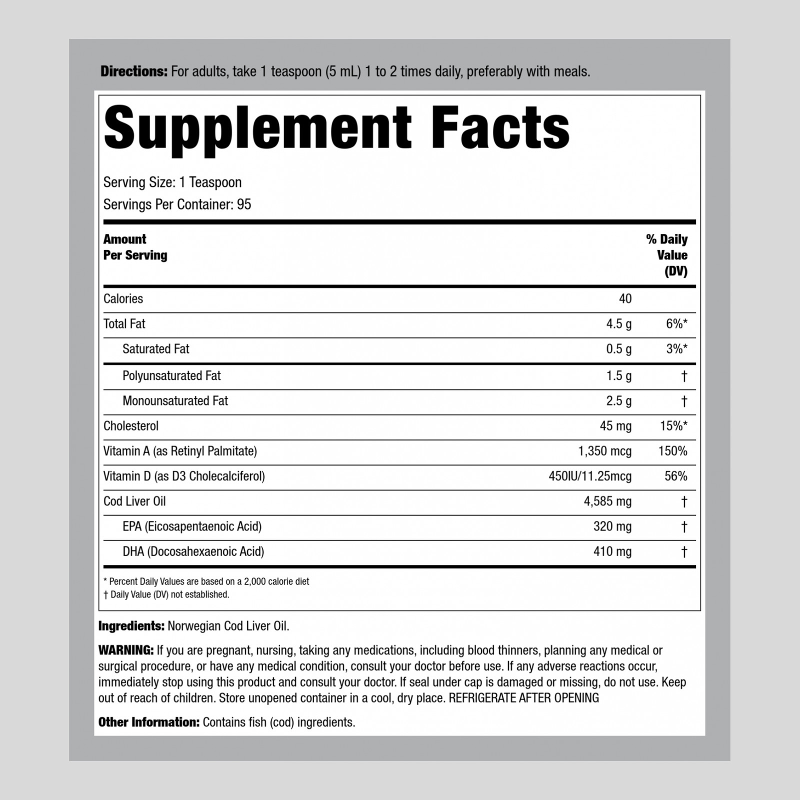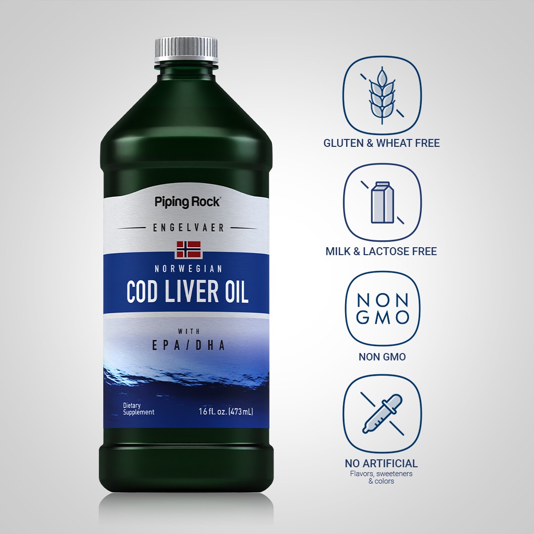 Cod Liver Oil Liquid 16 oz with EPA and DHA Non-GMO by Piping Rock