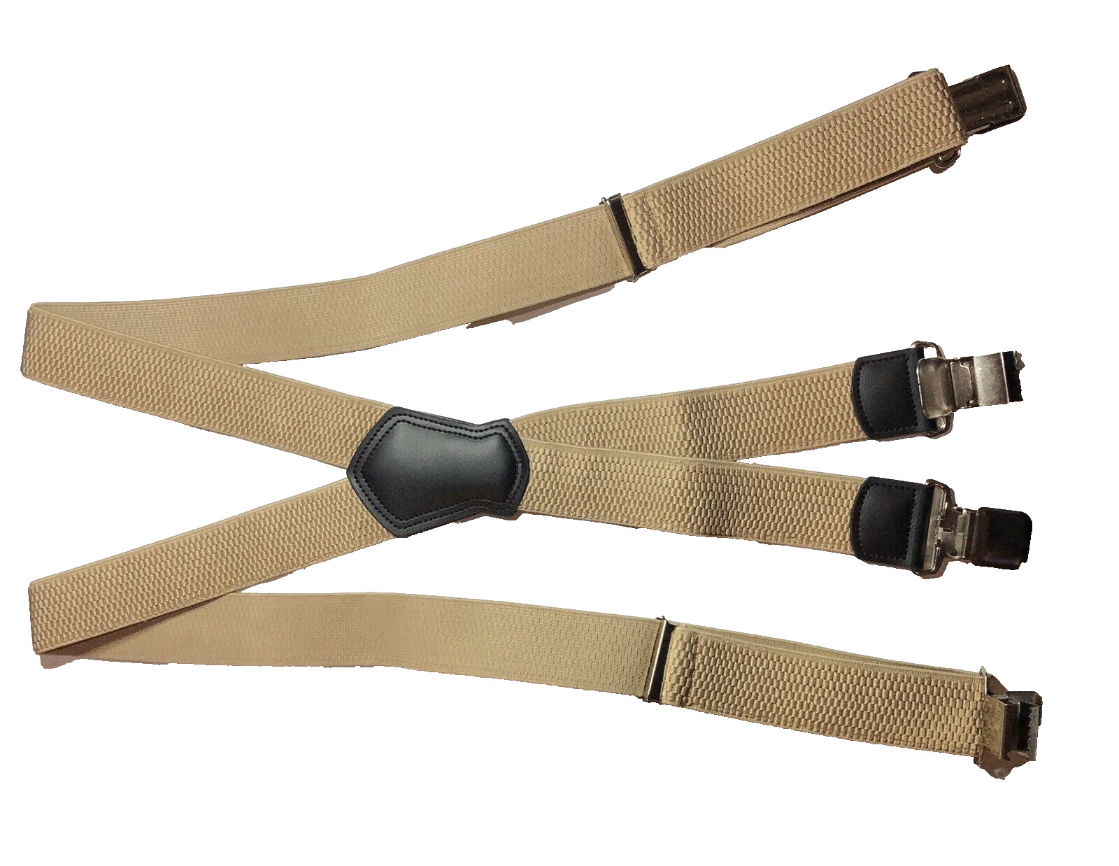 Heavy Duty Beige Suspenders Wide X-Back Adjustable Elastic with 4 Strong Clips