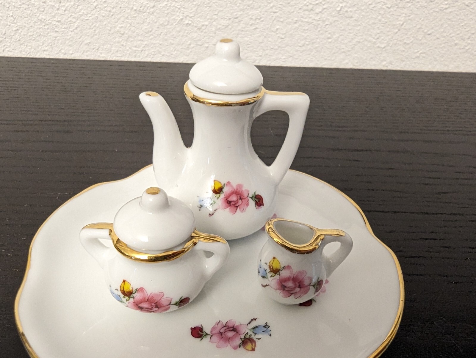 • Vtg Victorian Style 10 Piece Miniature Floral Pattern Porcelain Tea Set NIB