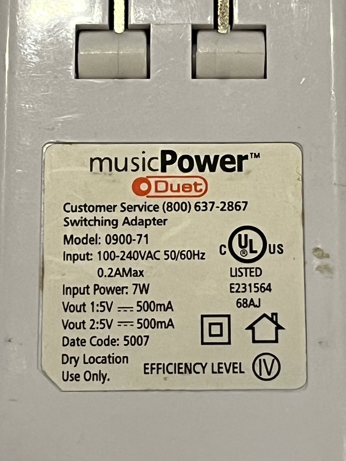 Music Power AC Adapter 0900-71 Duet USB Port AC Charger Car Charger And Cord