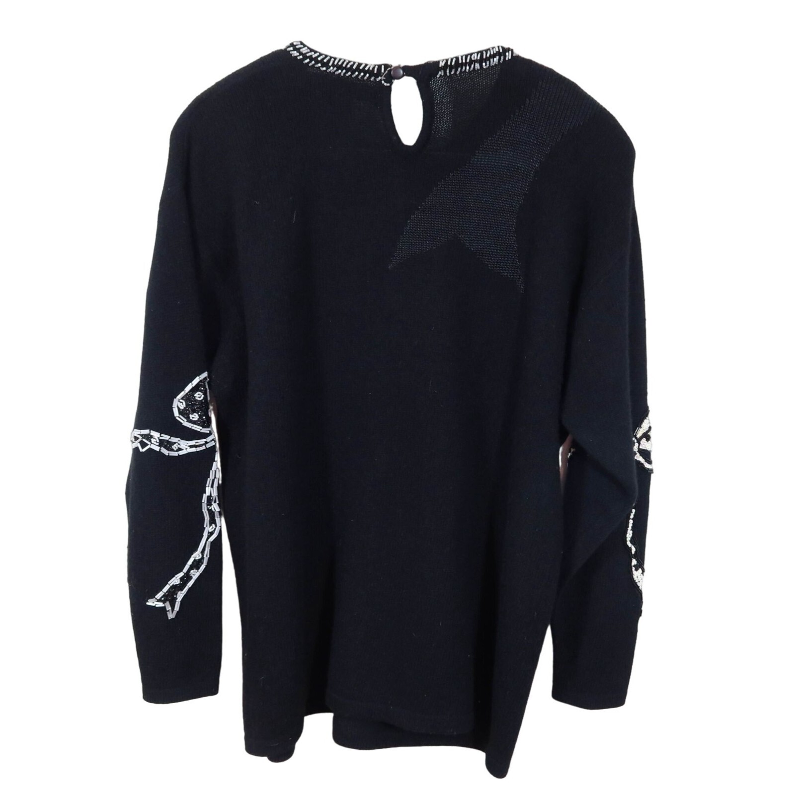 Vintage Beaded Bow Pullover Sweater Size L w/ Shoulder Pads Whimsigoth Wool
