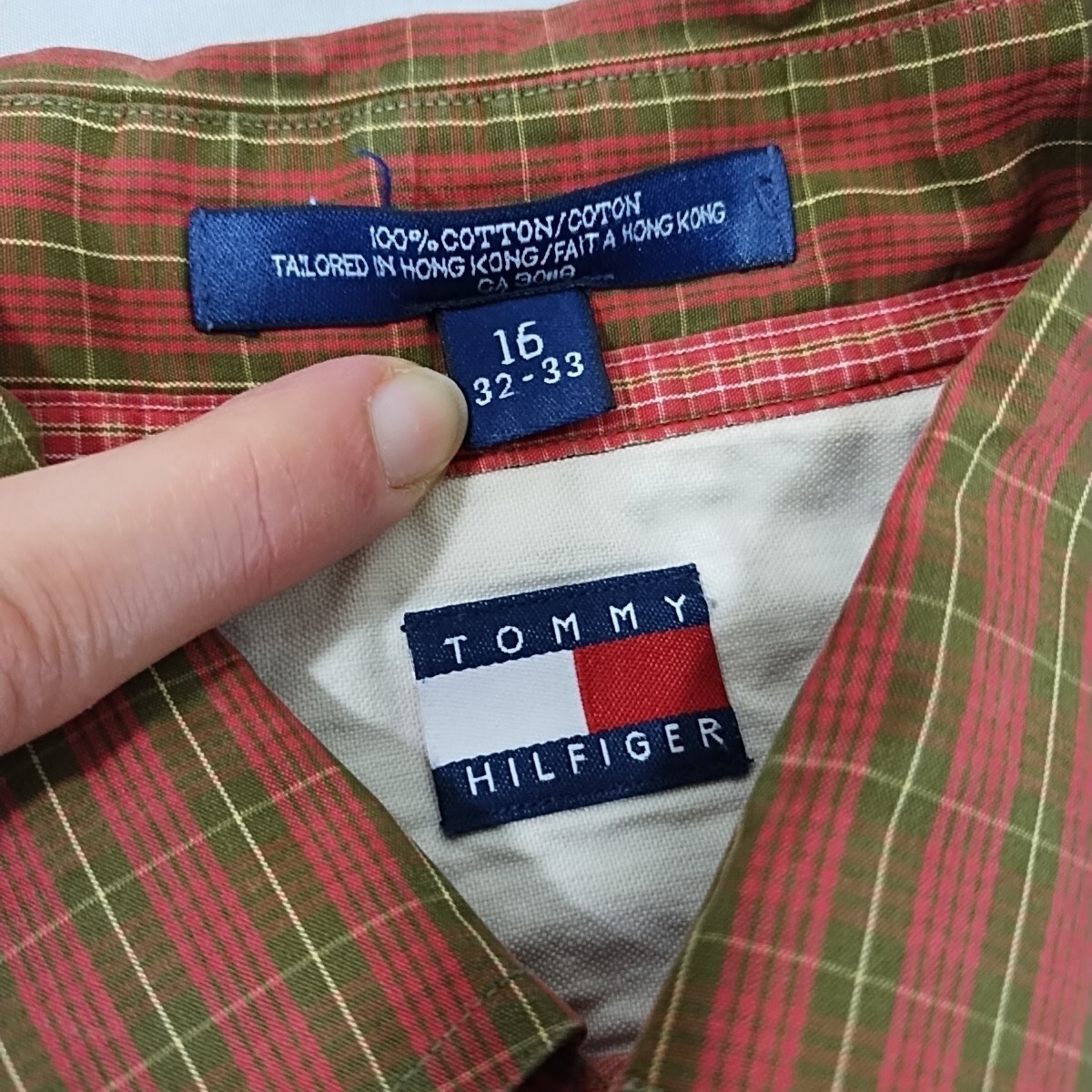как выглядит Tommy Hilfiger Dress Shirt Mens Large Plaid 90s фото