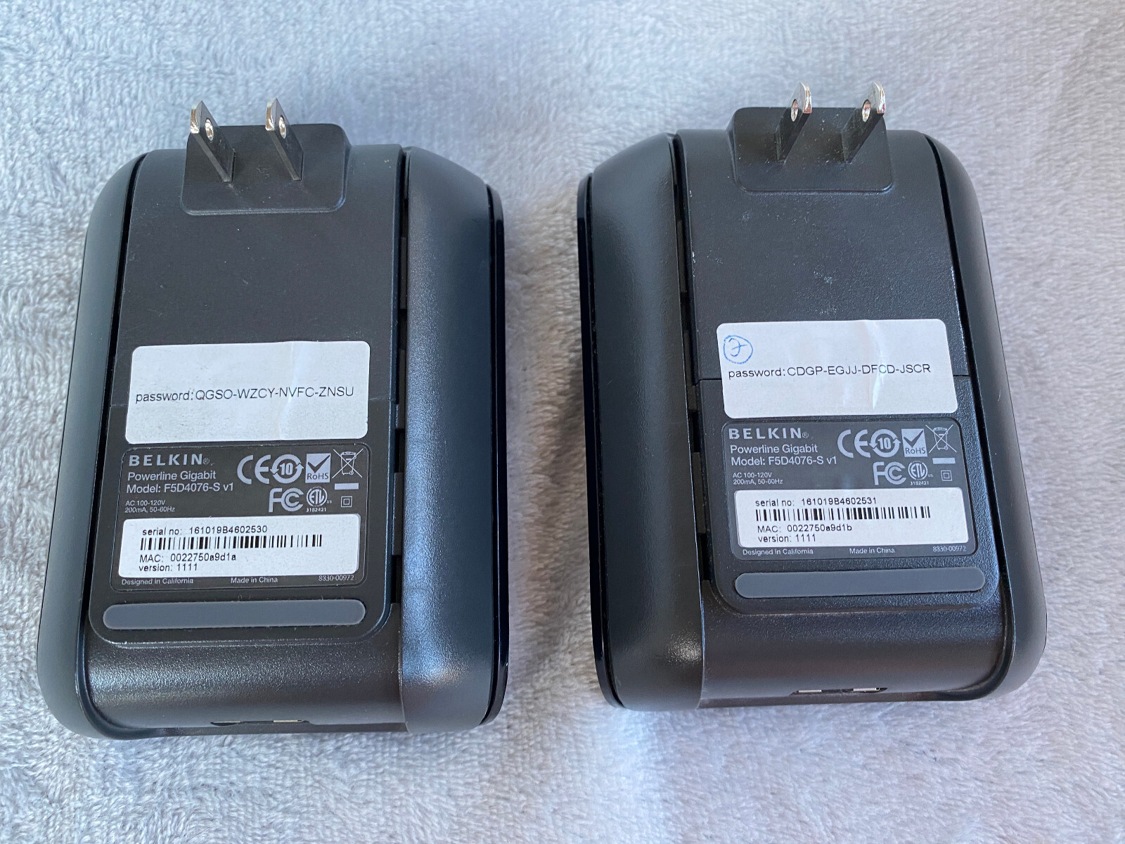 Lot of 2 Belkin F5D4076-S v1 Powerline Gigabit Adapters