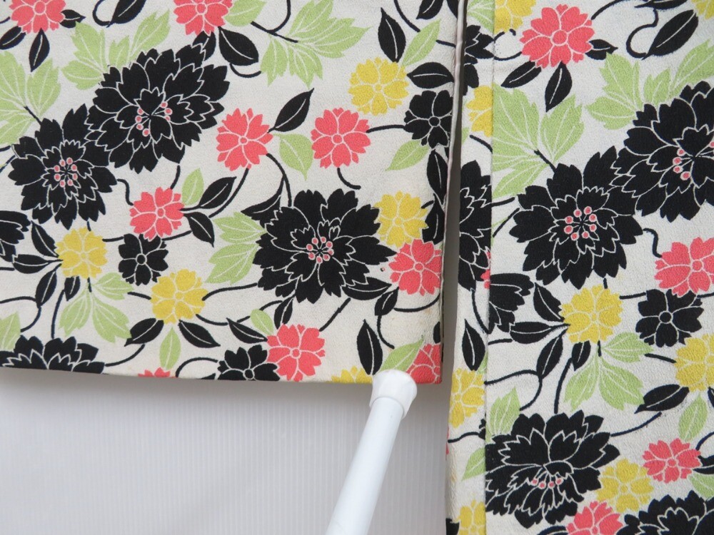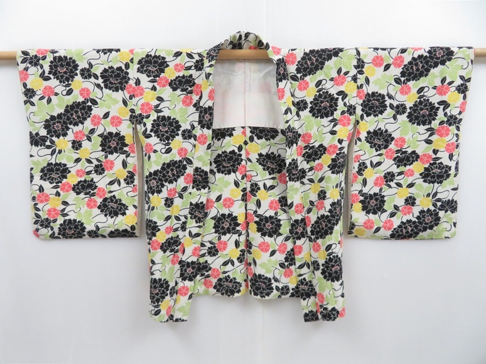 • 3514T12z610 Vintage Japanese Kimono Silk HAORI Flowers Off-white