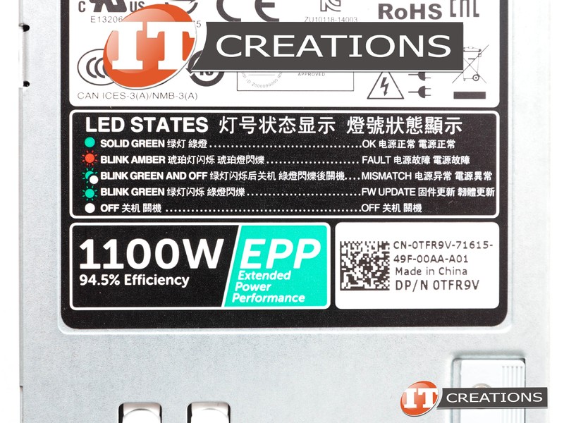 DELL POWER SUPPLY 1100W 80 PLUS PLATINUM FOR POWEREDGE R640 R740 R940 TFR9V