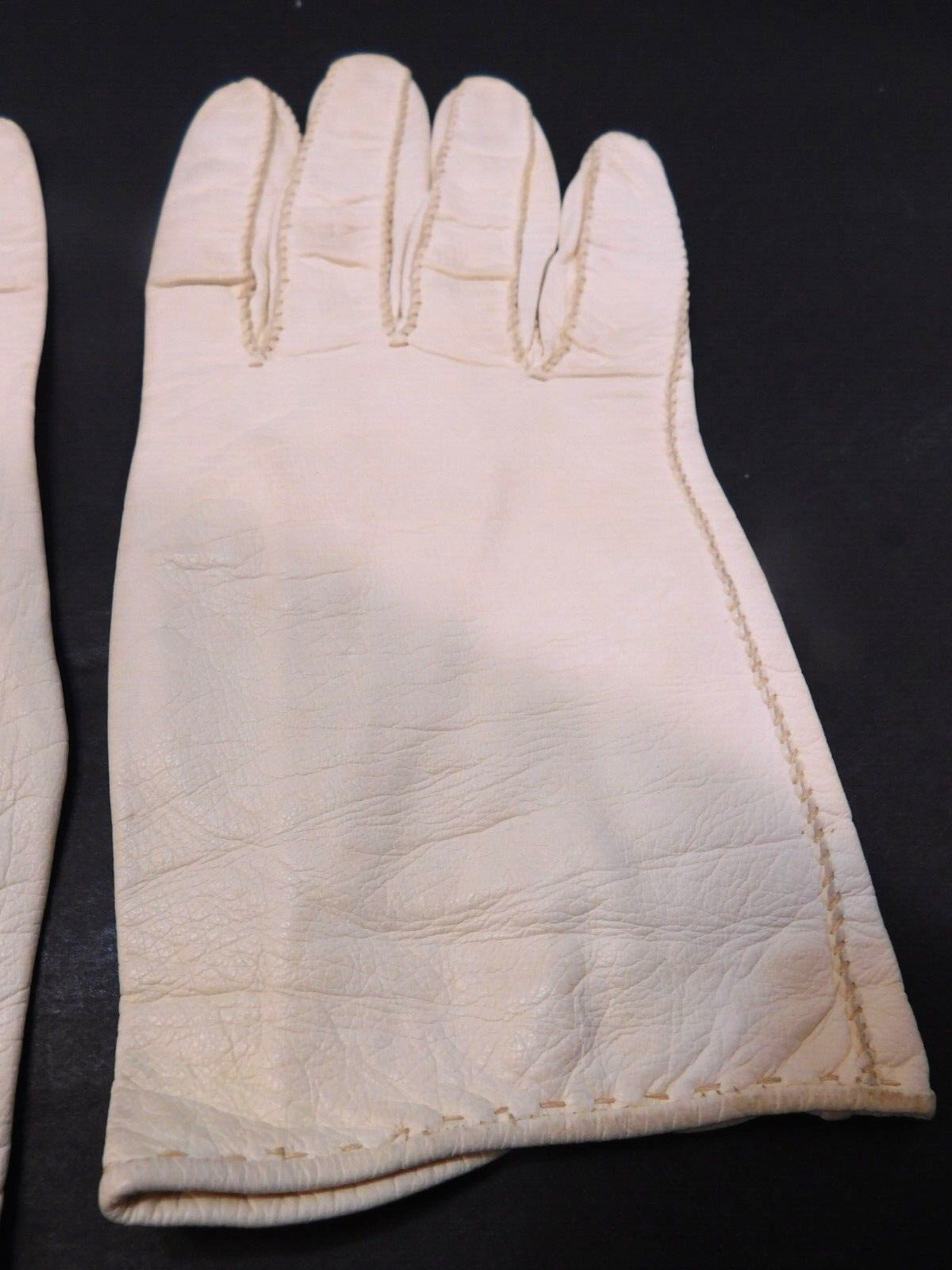 как выглядит VINTAGE LADIES CREAM LEATHER GLOVES UNLINED SIZE 6.5 фото