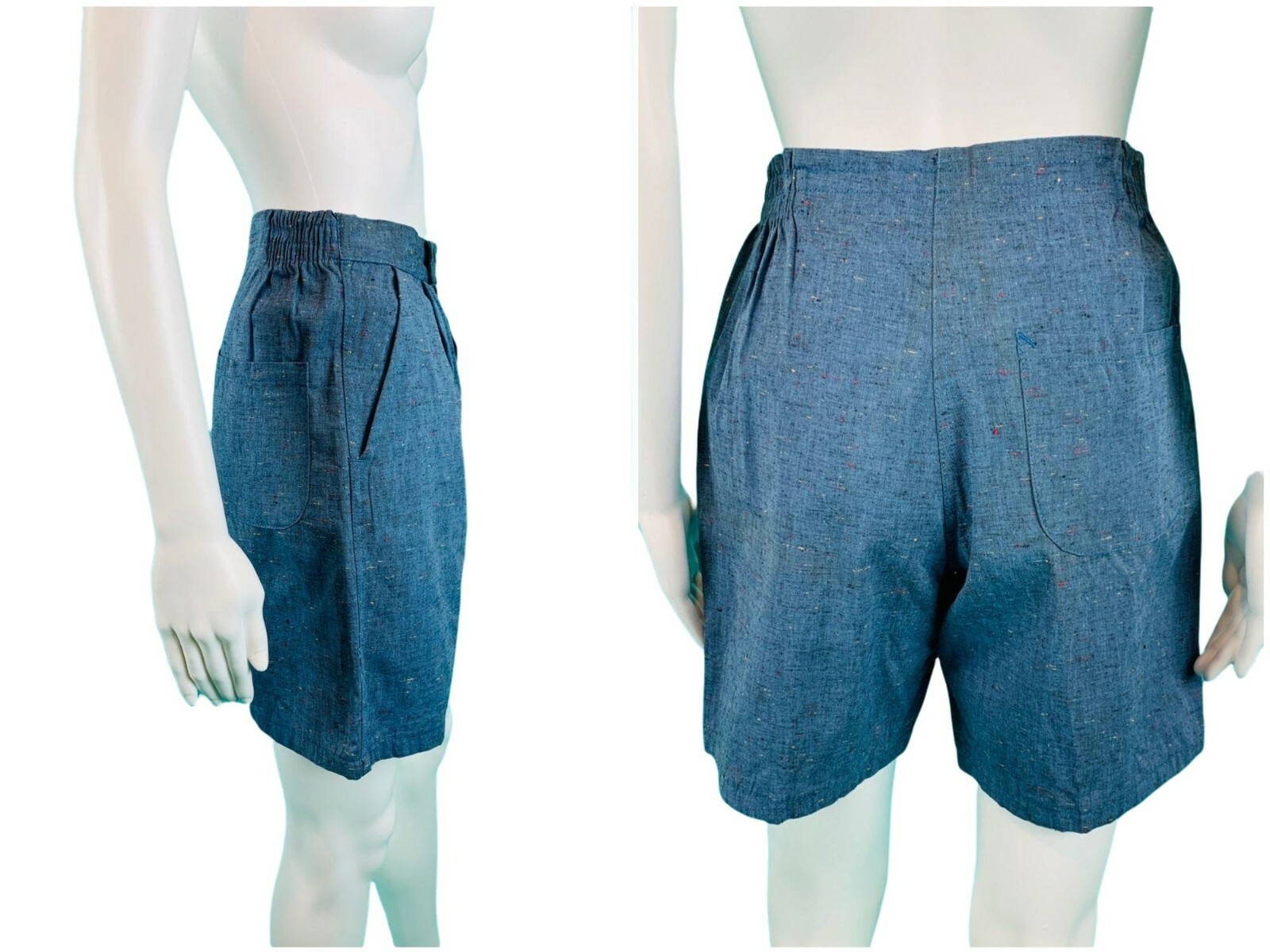 Vintage 1960s High Waisted Shorts Blue Multicolored Speckled Summer W 24
