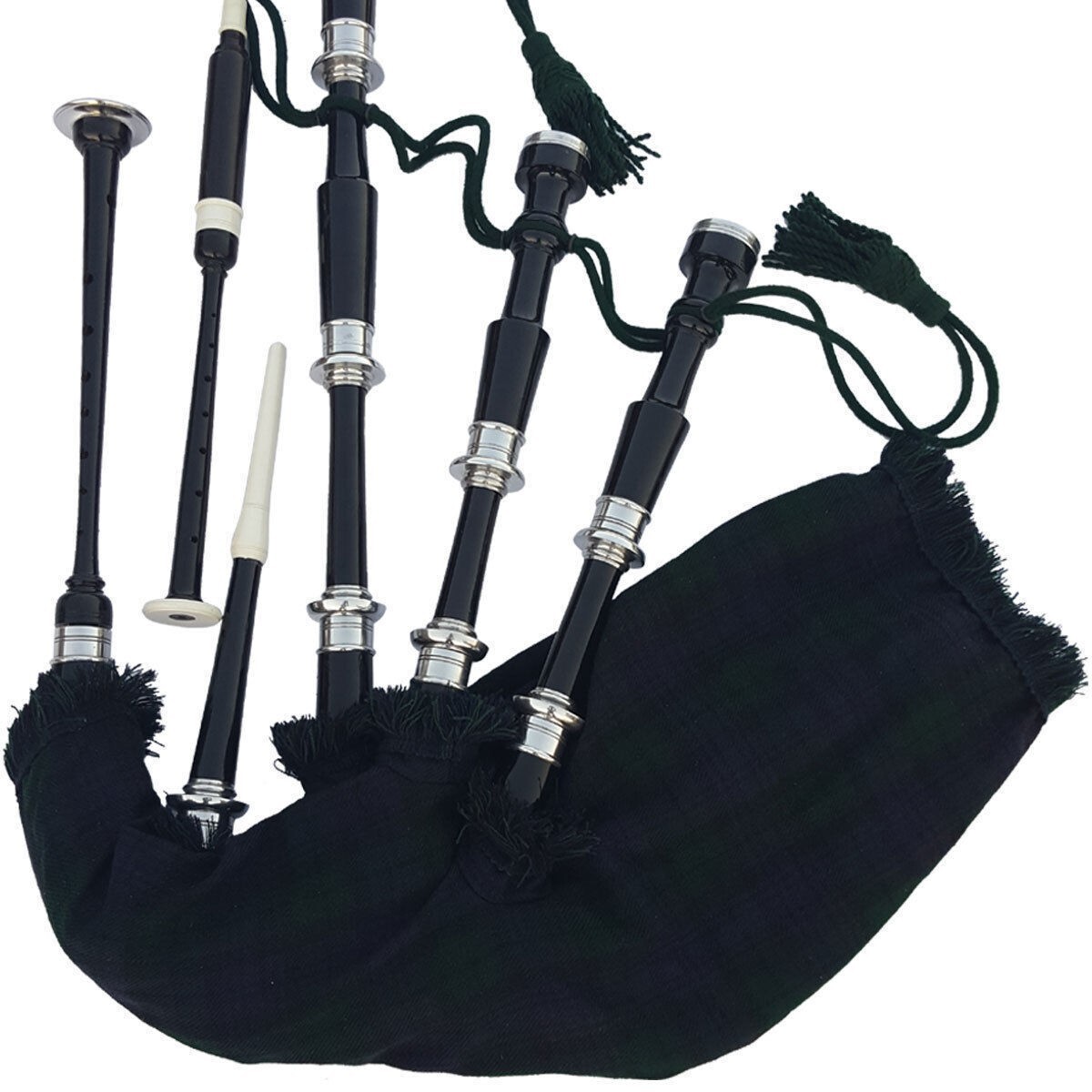 Traditional Great Highland Scottish Plain Black Bagpipes Rosewood Silver Mounts