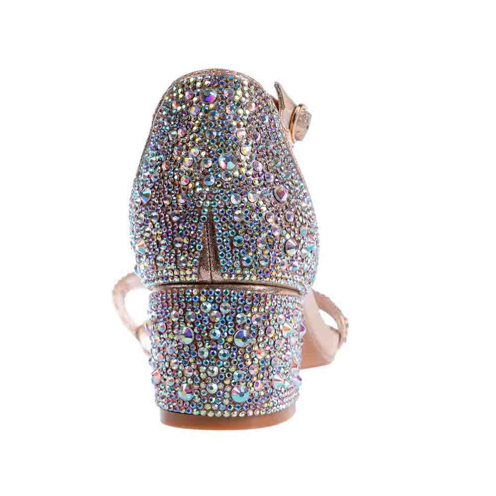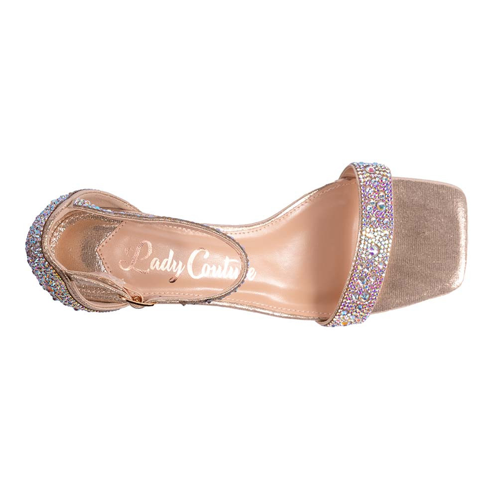 Lady Couture DAZZLE Gold 2-Inch Mid Block Heel Rhinestone Sandal