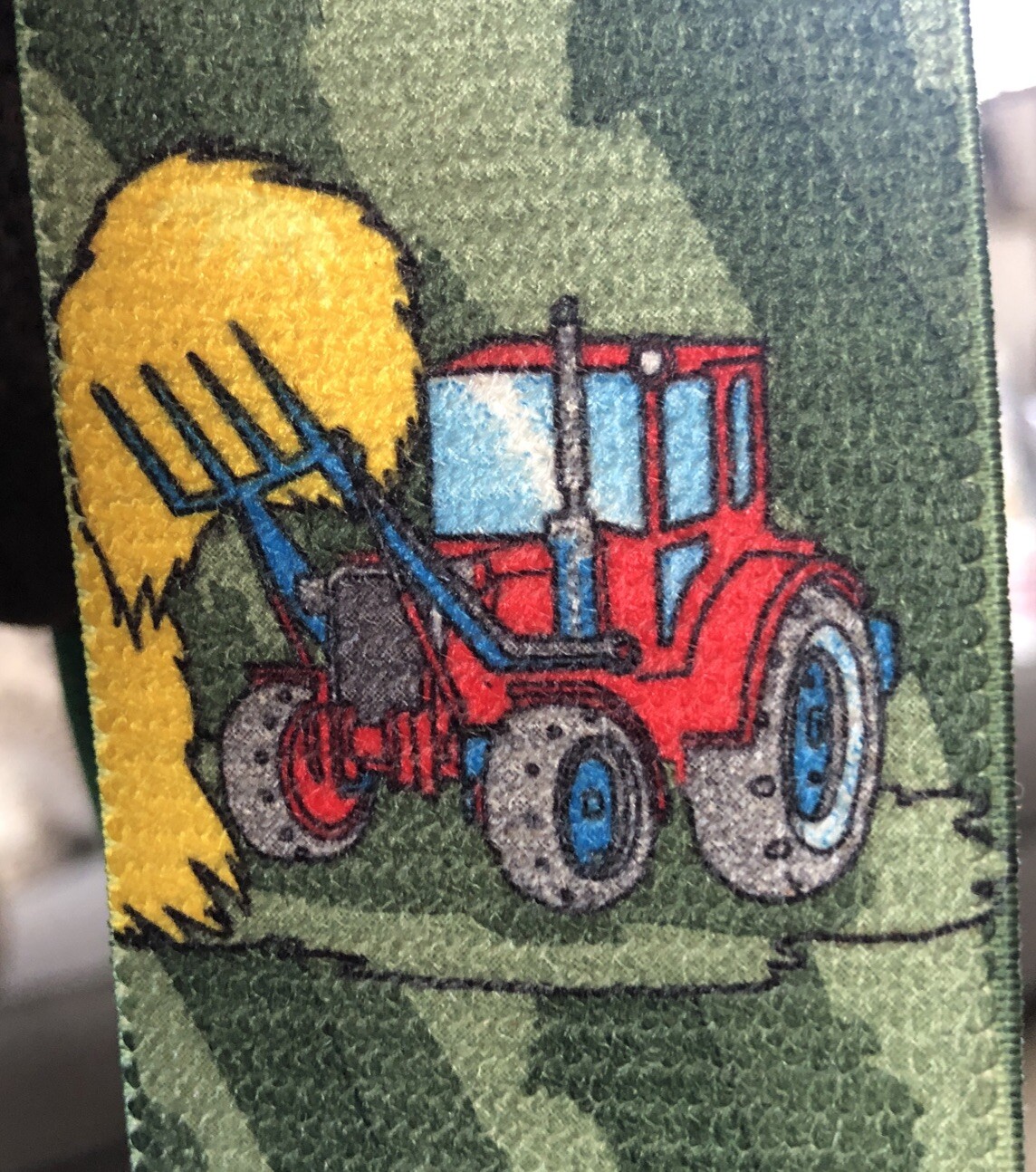 Green Adjustable Suspenders with Red Tractors 2 Straps Made in the USA